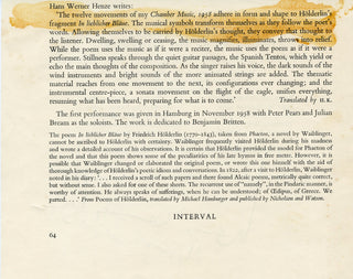 31. Henze, Hans Werner. (1926–2012) & Seiber, Mátyás. (1905-1960) Signed 1959 Concert Program Page