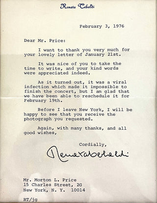 140. Tebaldi, Renata. (1922–2004) Typed letter signed
