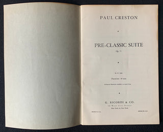 17. Creston, Paul. (1906–1985) [Monteux, Pierre. (1875–1964)] "Pre-Classic Suite. Op. 71" - Inscribed to Pierre Monteux