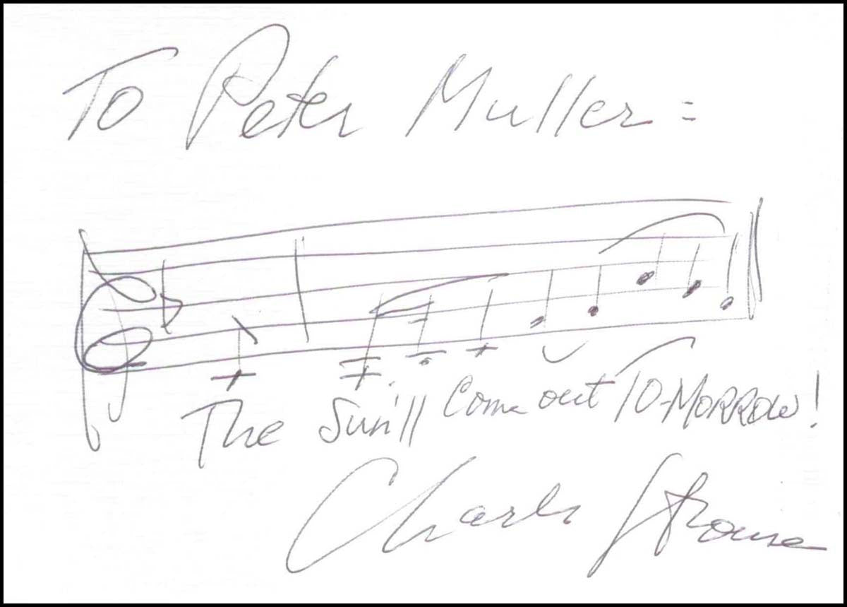 Strouse, Charles. (b. 1928). Autograph Musical Quotation, "The Sun'll Come Out.".