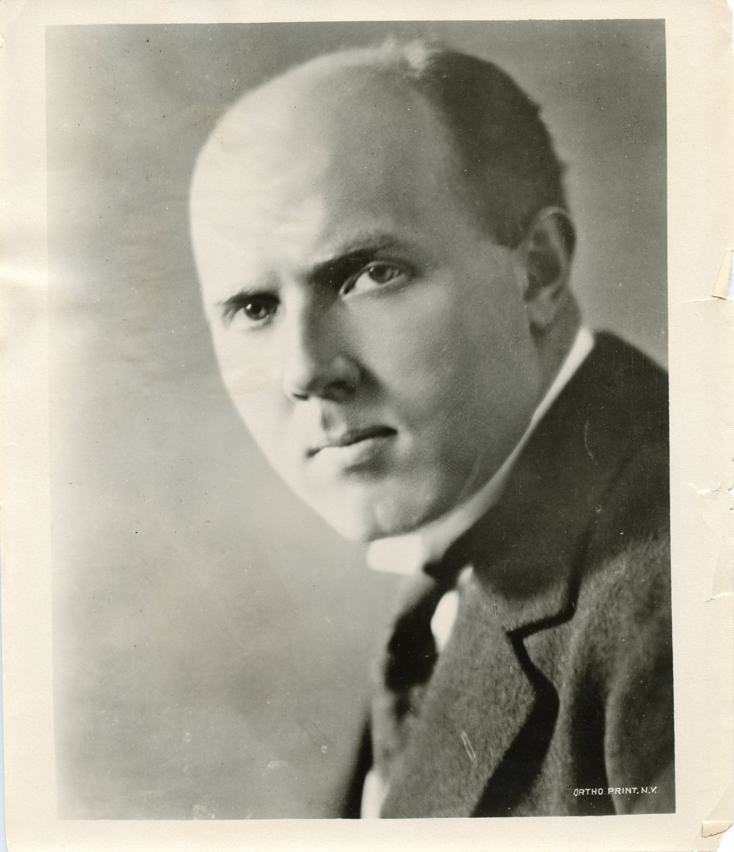 An early Ortho Print of NY bust publicity photograph of the German pianist, specialist in Debussy. Chipped along the right edge and corners, date stamped and with clipping to verso, else fine. 8 x 10 in. (21 x 25.5 cm).