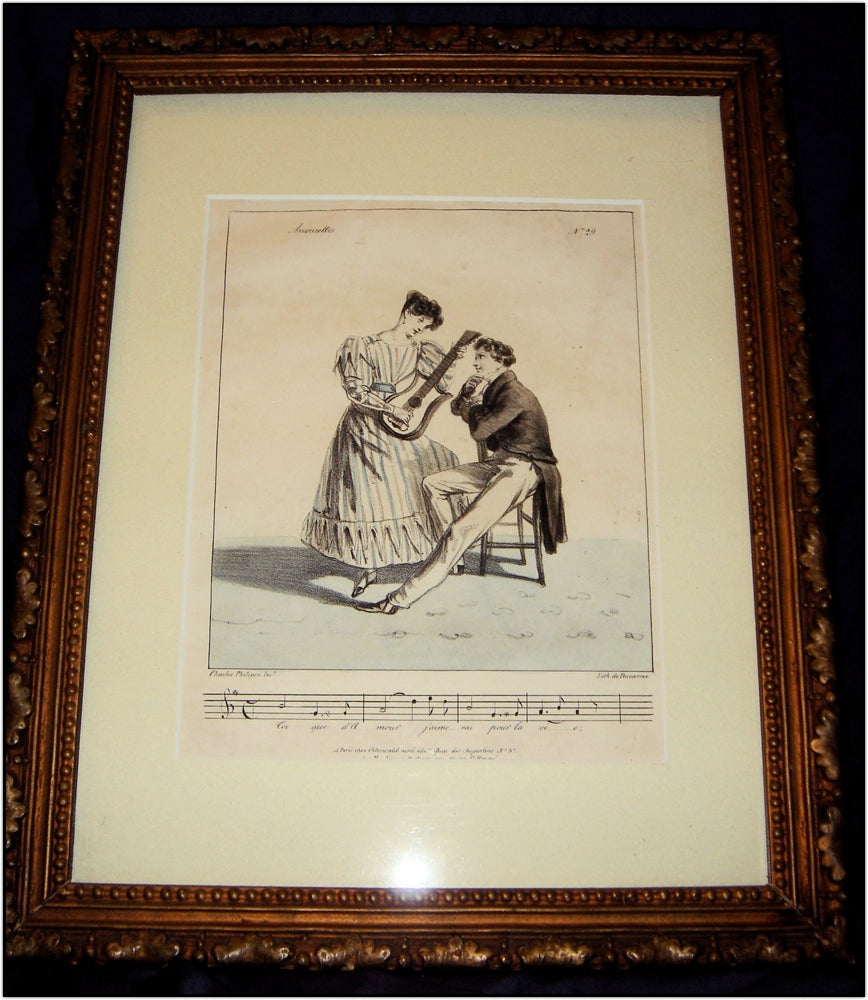 In very fine condition and set in a beautiful antique frame, overall 16" by 13." From a series of lithographs by Philipon, the French lithograper, caricaturist and journalist who was editor of "La Caricature" and of "Le Charivari."