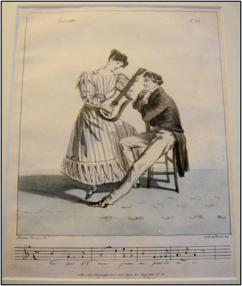 [Guitar] Philipon, Charles. (1800-1861). 19th Century Musical Lithograph. Ducarme.