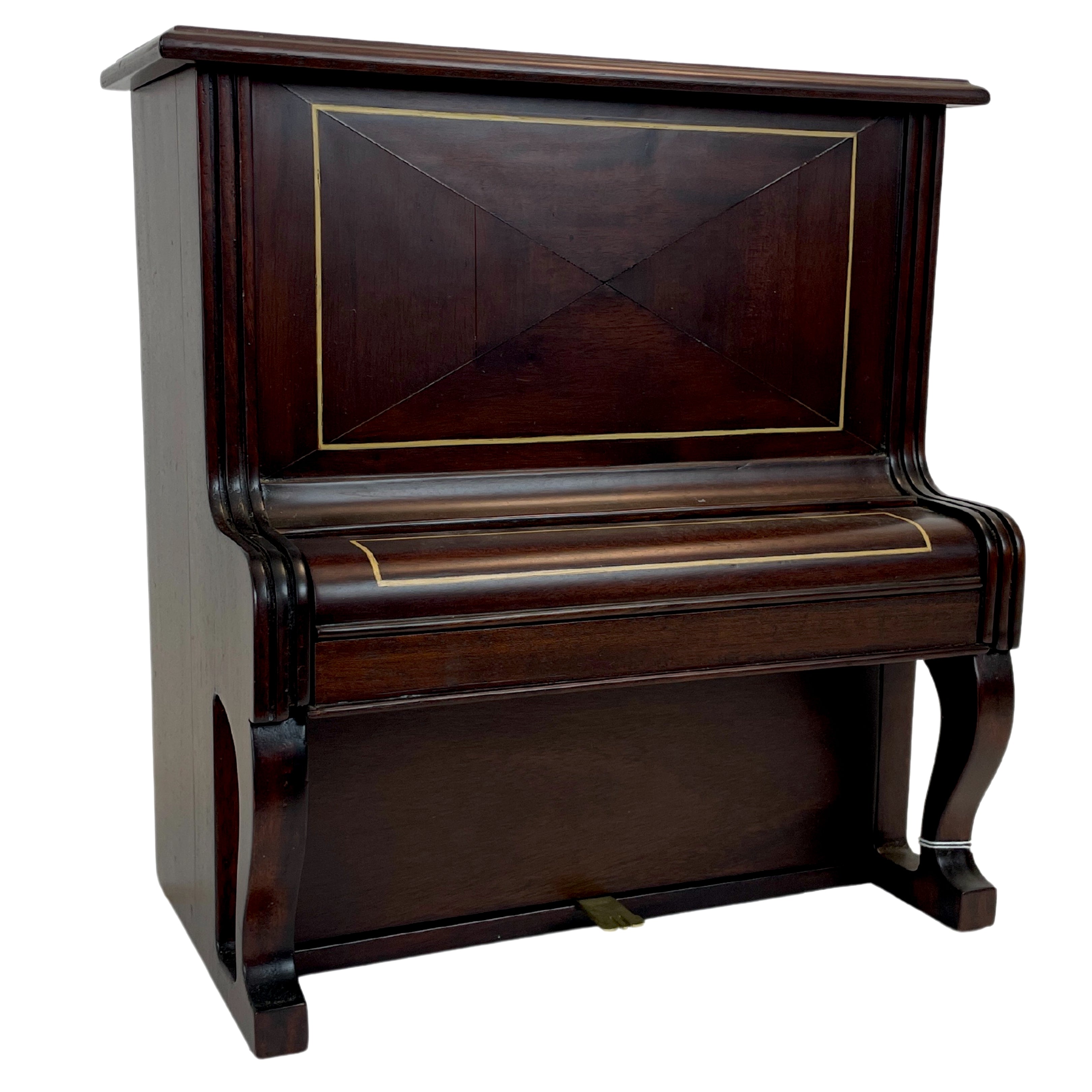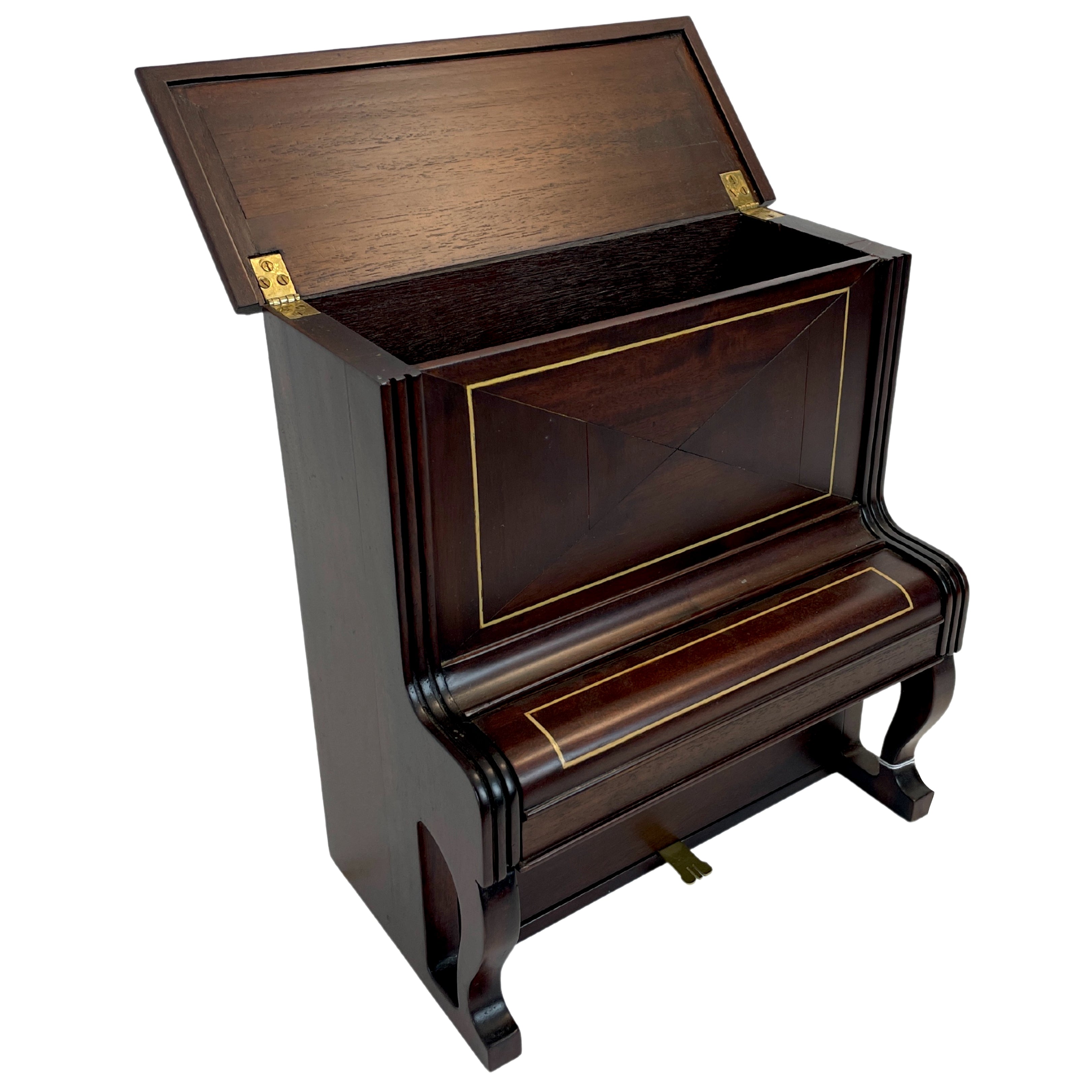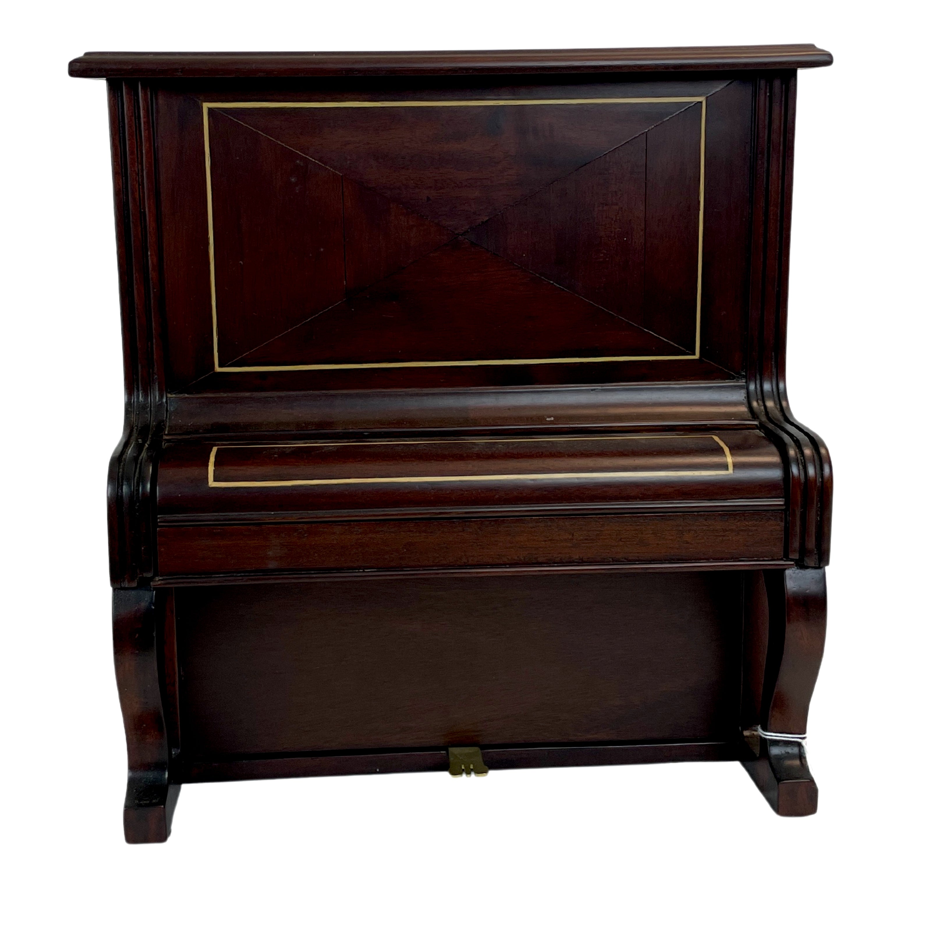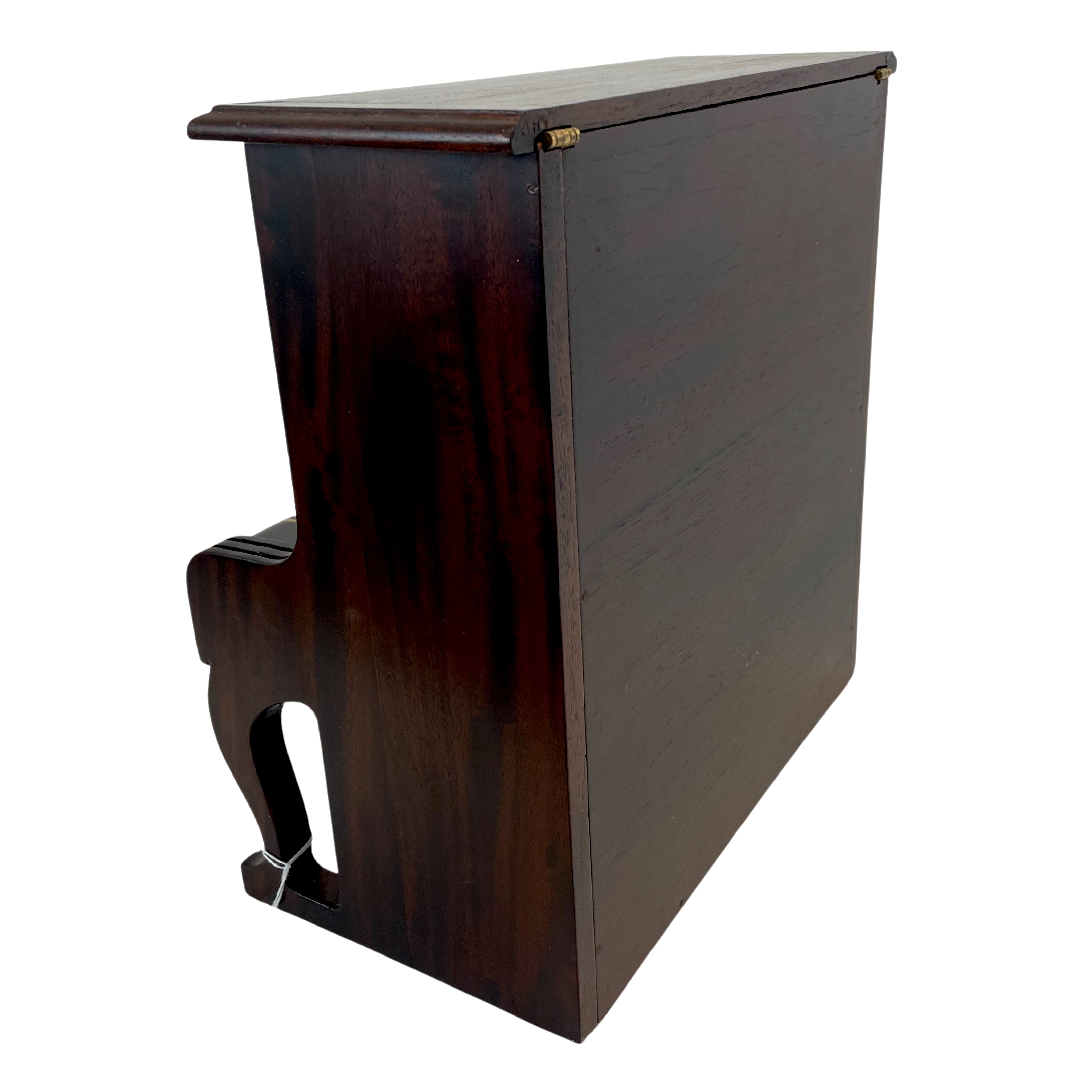 Selamat Designs wood desk box as miniature piano, label to bottom. 12-1/4''h, 11''w, 6-1/2''d. In very good condition.