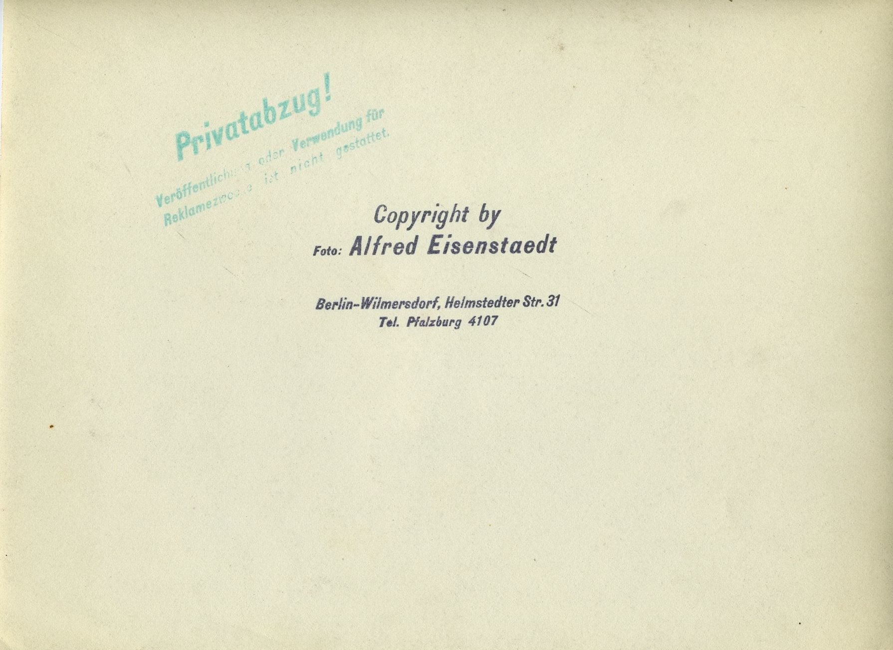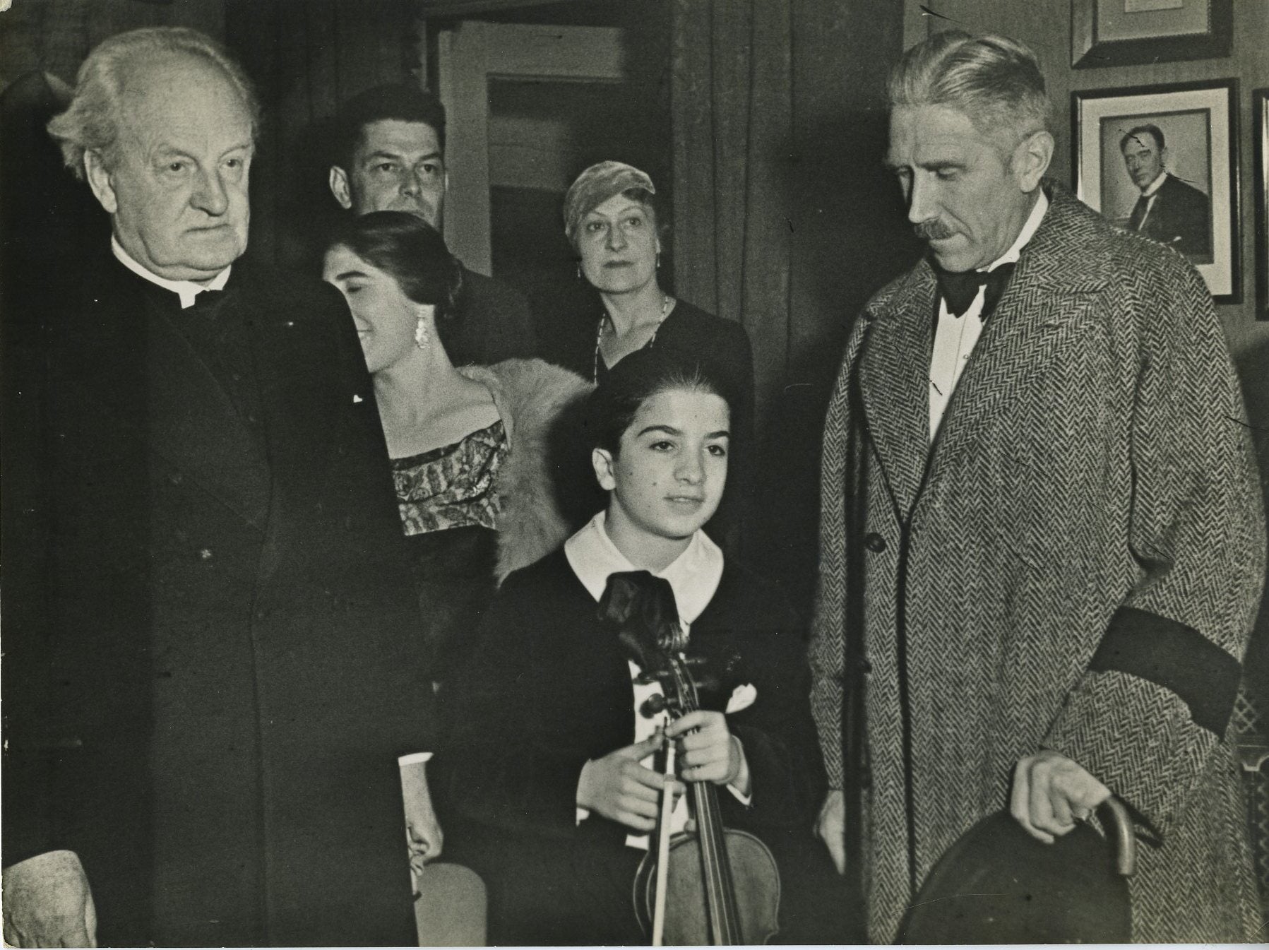 Original Eisenstaedt photograph of the superb fiddler, specialist in the 19th century bravura repertory. A student of Persinger, Piastro and Kulenkampff, Ricci was widely acclaimed for his technical prowess and was the first to record the 24 Paganini Caprices in their original version. 7" x 9" photograph of Ricci, German Chancellor Franz Von Papen and writer Gerhart Hauptmann as the very young Ricci prepared to perform with the Berlin Philharmonic. With Eisenstaedt credit stamp on the back, this photograph was originally the property of Ricci's teacher, violinist Louis Persinger.