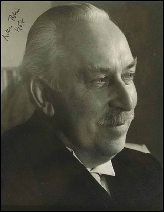 Signed original doublweight Jane Bown portrait photograph of the important English composer, a schoolmate of Ralph Vaughan-Williams who was prolific in all styles and wrote the music for the great H.G. Wells inspired film "Things to Come." While in the US for a holiday, the Second World War broke out. and Bliss initially stayed in America, teaching at the University of California, Berkeley. He made the hazardous Atlantic crossing to England in 1941 and became director of music at the BBC from 1942 - 1944. 15.5 x 20 cm. Light silvering around the edges, and a light vertical crease, else fine.