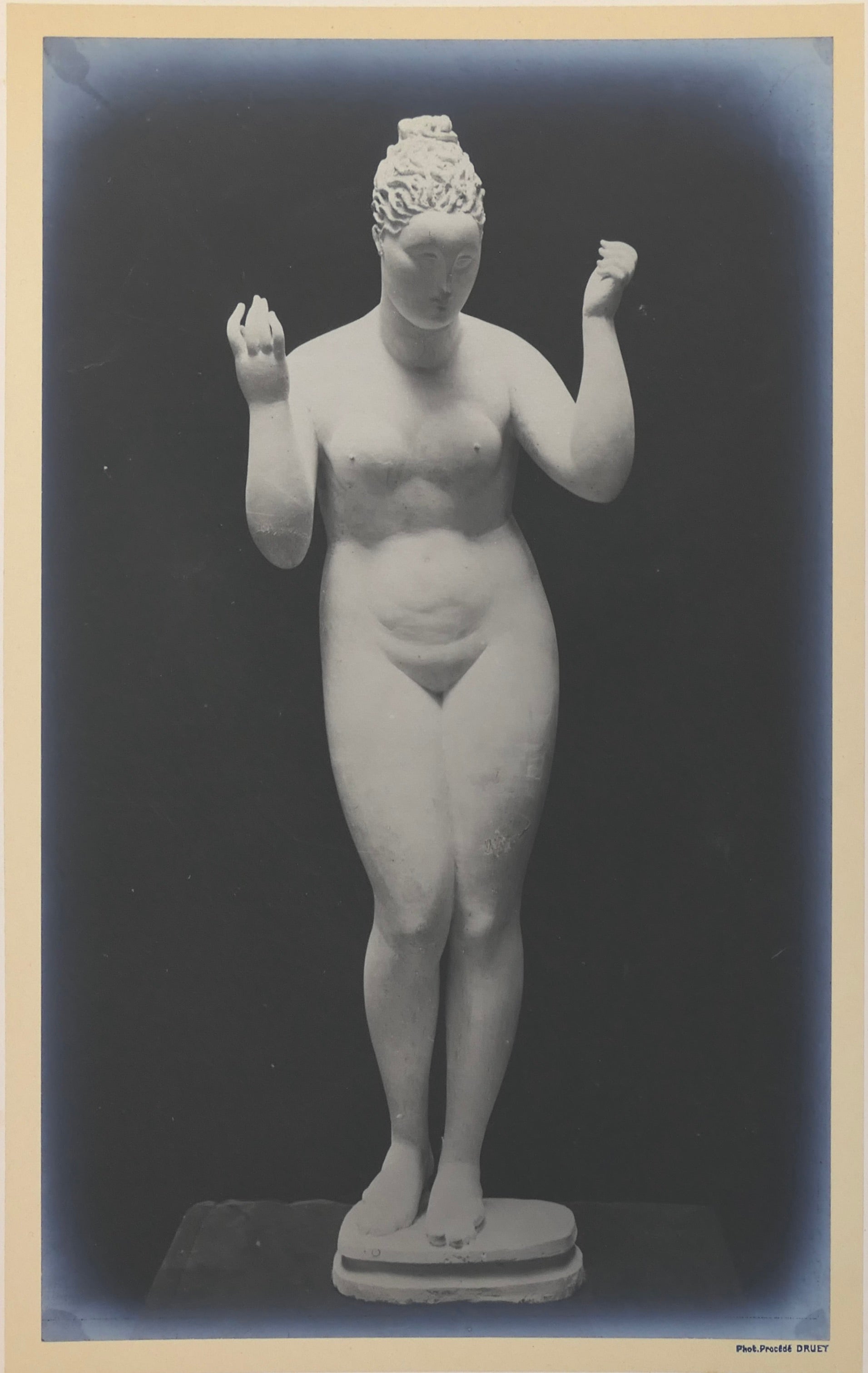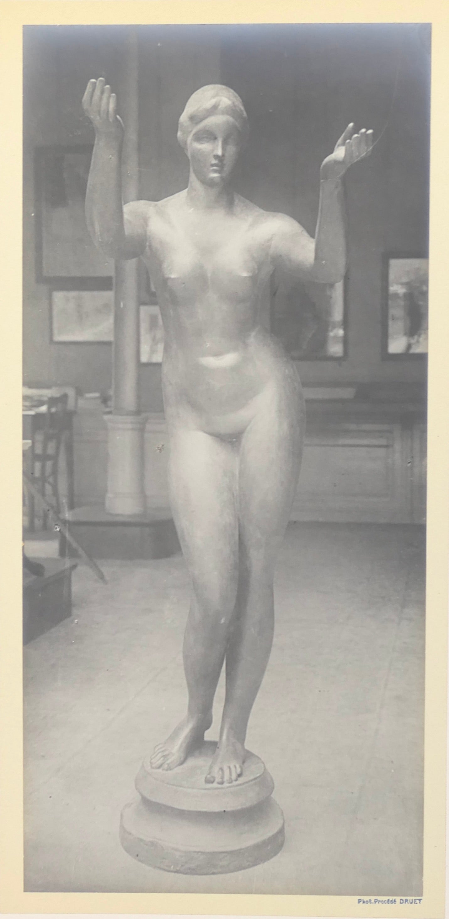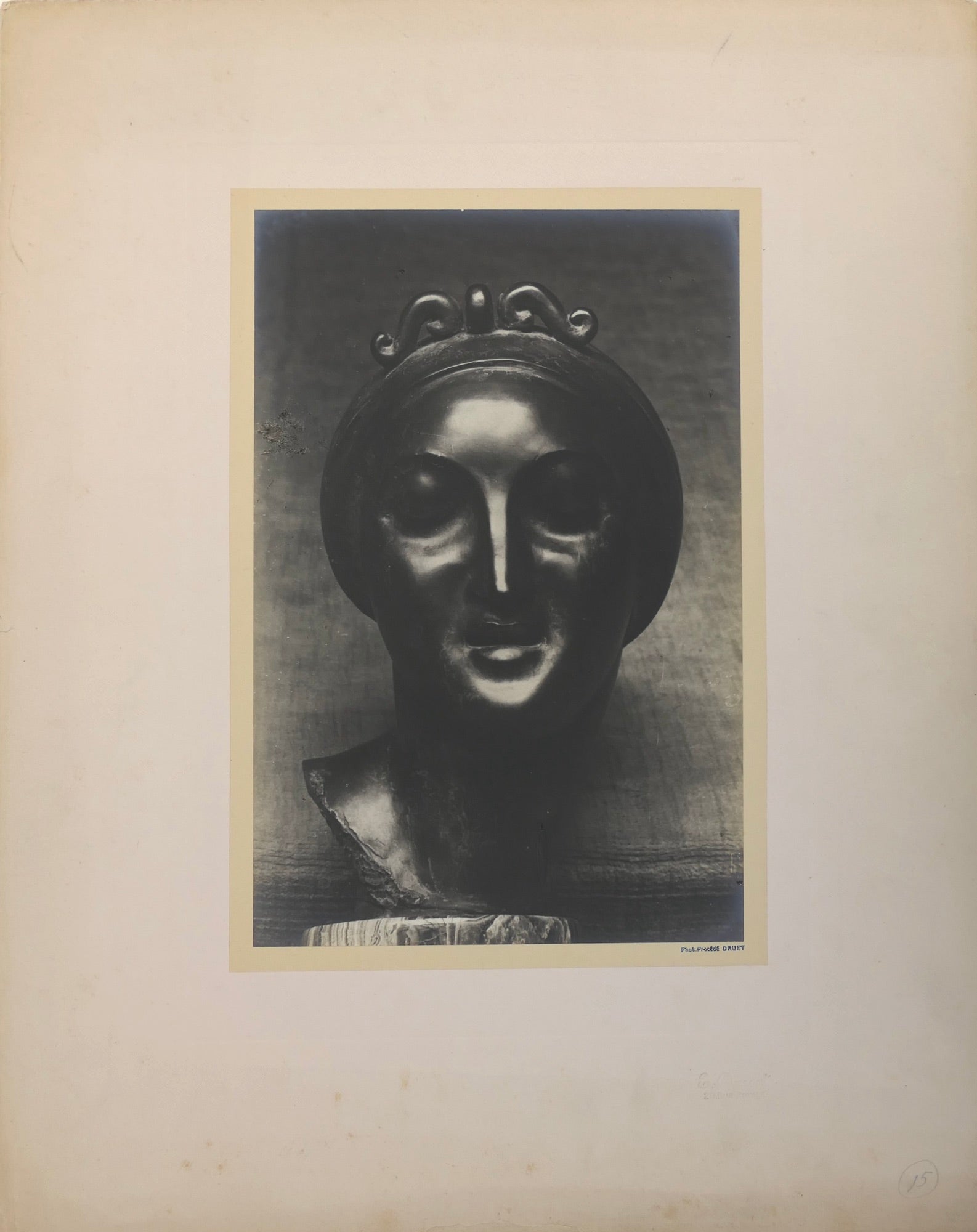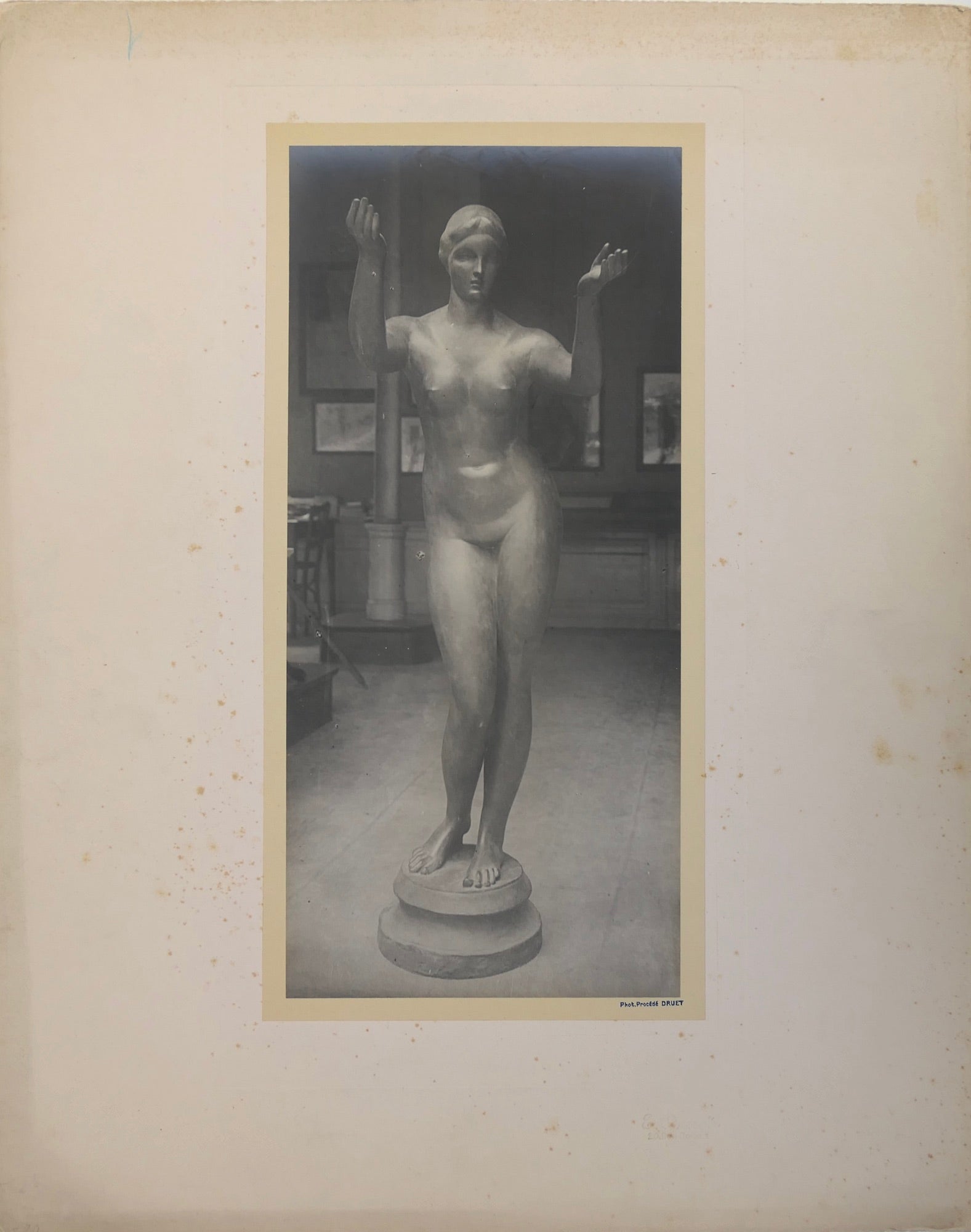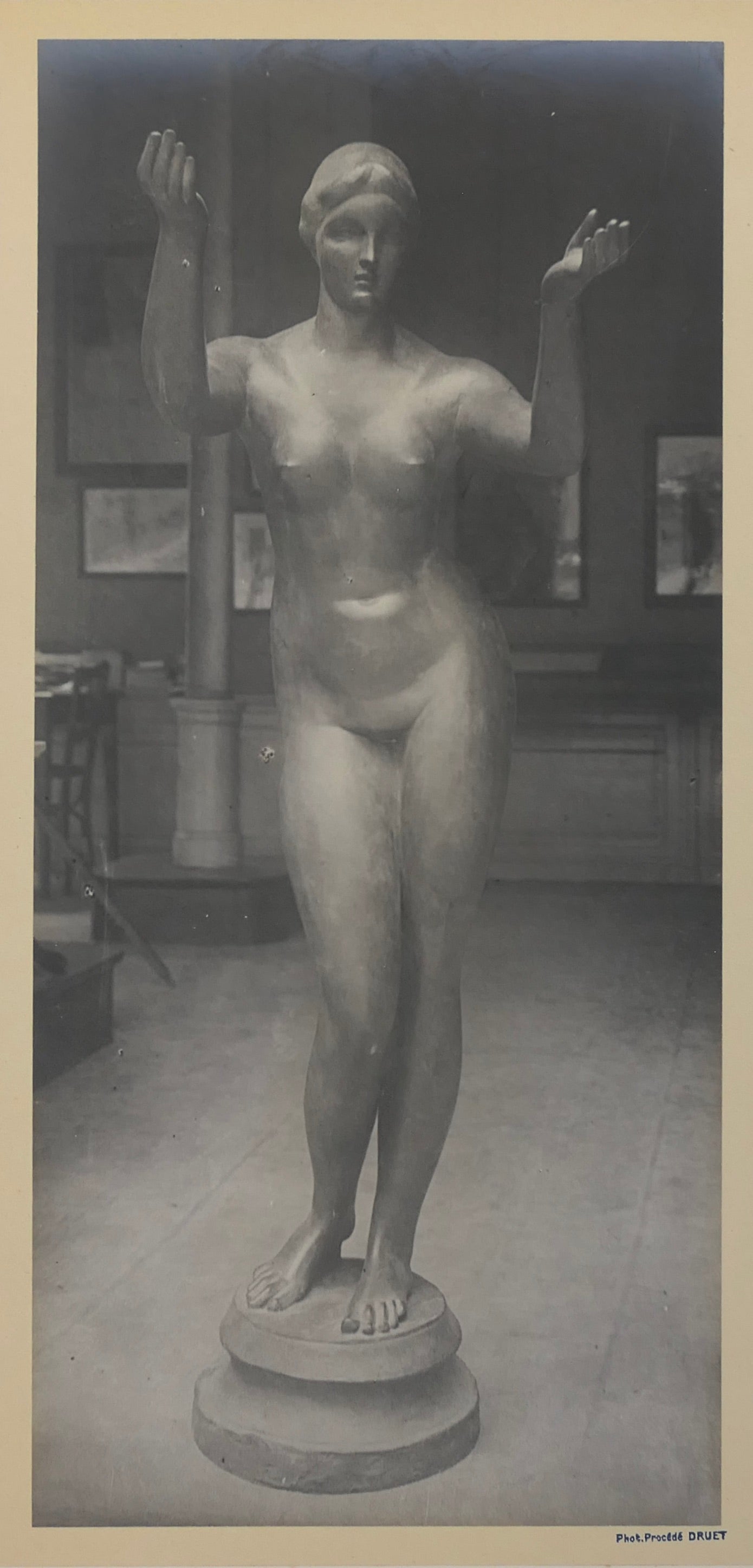 Group of eight vintage silver gelatin exhibition photographs of Elie Nadelman sculptures, approx. 1908 -09, each roughly 15 x 10 inches (38 x 25.5 cm), taken by the photographer and gallerist Eugène Druet on the occasion of Nadelman's first ever solo exhibition, Galerie Druet, Paris, 1909. Some of the original exhibited plaster works were destroyed and these remarkable photographs (other examples of which are in the Lincoln Kirstein Photograph Collection, Jerome Robbins Dance Division, New York Public Library), constitute thus the only record of some of the works included in this historic exhibition. Each stamped "Phot. Procédé DRUET" in blue to the inner mount and with the drystamp "E. Druet / 20, Rue Royale / Paris" lower right. Generally in fine condition, with some silvering and scattered foxing to the mounts, two with losses to the mounts.