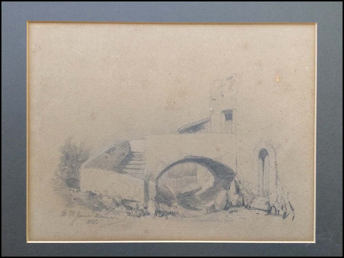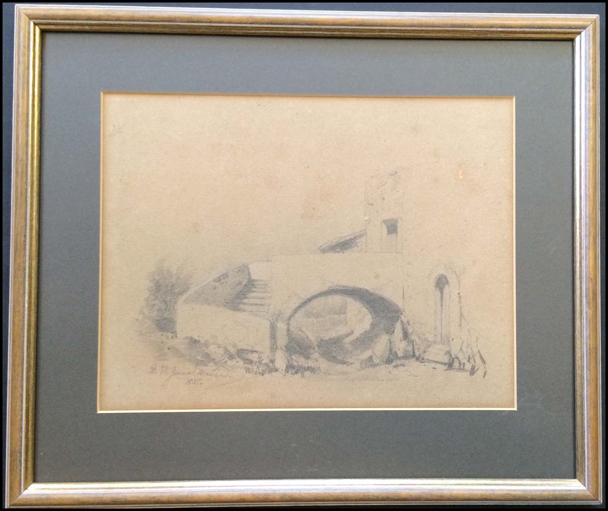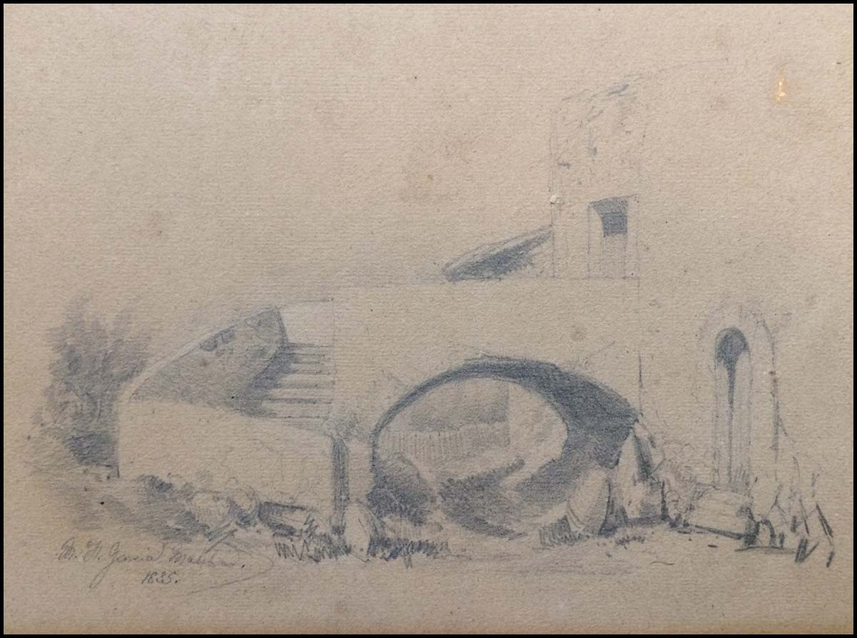 Malibran, Maria. (1808-1836) . Farmhouse, possibly near Milan, 1835 - Original Drawing. Original drawing, pencil on paper, signed "M. F. Garcia Malibran" and dated 1835 to lower left, discreet closed tear approximately half a centimetre long, not affecting image, 21 x 28cm (8 x 11ins). Simply framed.