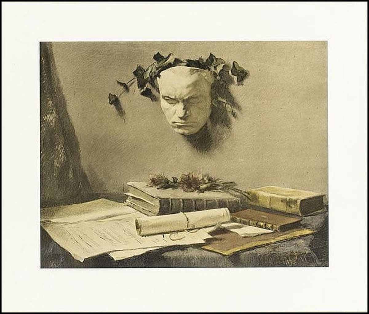 [Beethoven, Ludwig van. (1770–1827)] Garf, Salomon. (1879–1943). Still Life Pastel by an Auschwitz victim. Pastel on paper, signed in chalk 'S. Garf' (lower left in the image), matted under passe-partout (unframed), image size 15.3 x 19 inches (38.8 x 48.2 cm.).