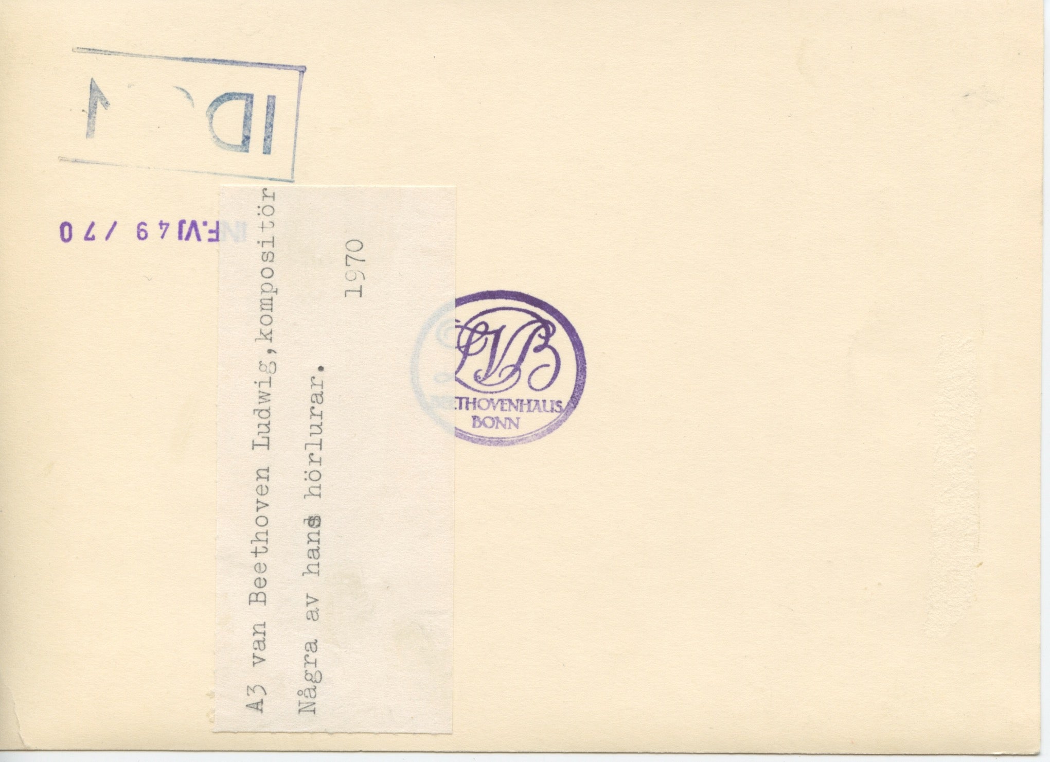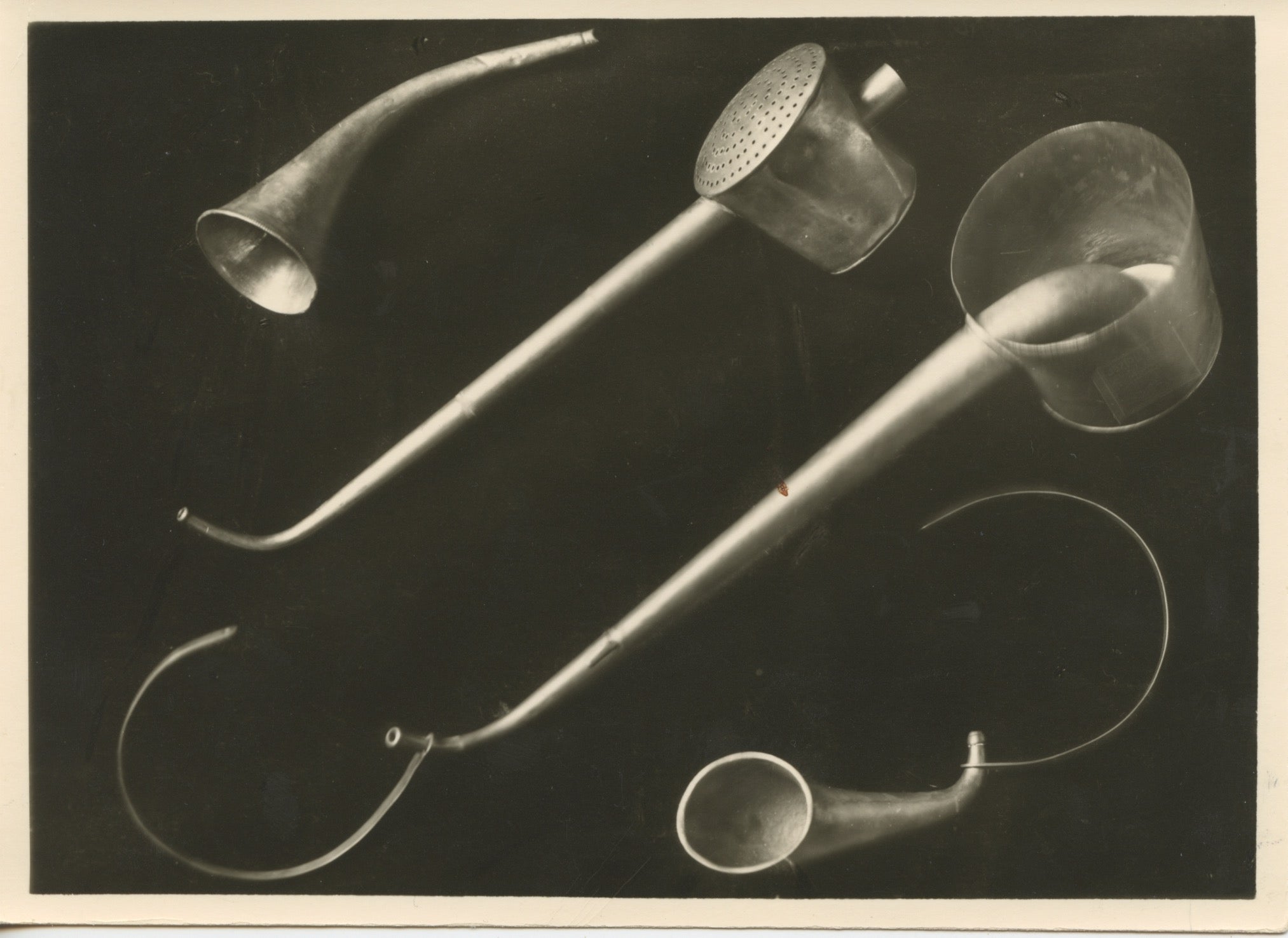 A visually striking photograph of Beethoven's listening cone and devices, issued by the Beethovenhaus, Bonn in 1970. The image has a bit of the abstract feel of a Man Ray composition! 7 x 5 inches (17 x 12.5 cm.).