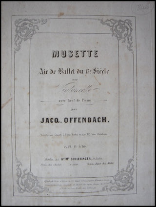 Offenbach, Jacques. (1819-1880). Musette. Air de Ballet du 17me Siècle pour Violoncelle avec Acct. de Piano, Op. 24. . Berlin: Schlesinger. 1846. First edition.