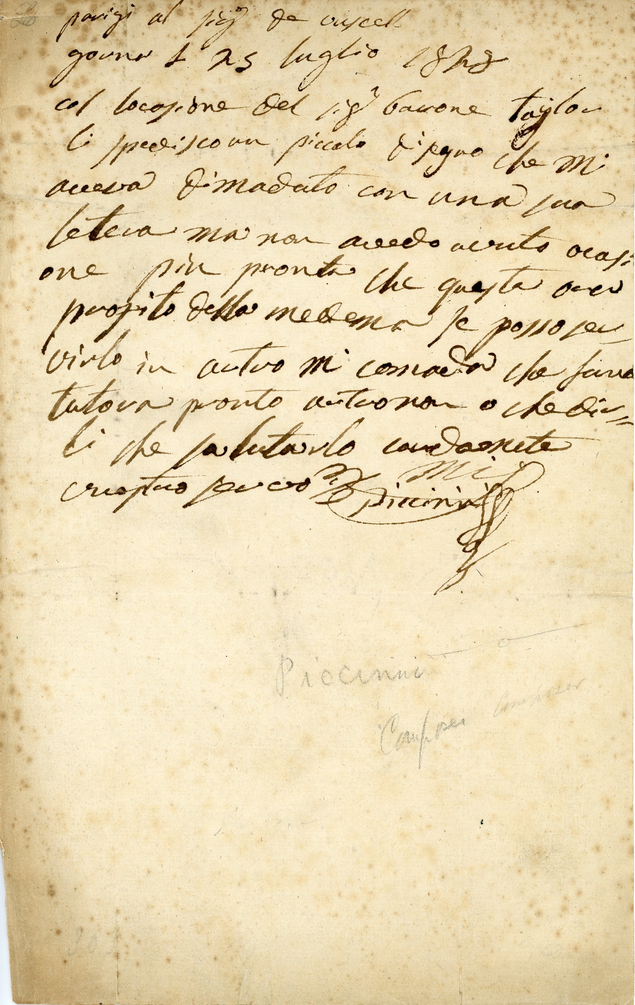 Louis Alexandre Piccinni (variously Louis Alexandre, Luigi Alessandro or Lodovice Alessandro) was a prolific music composer born in Paris of Italian ancestry. He studied piano, and later attended the Conservatoire, where he studied composition from Jean-François Le Sueur. From 1803 to 1816, he was conductor of the Théâtre de la Porte Saint-Martin, and from 1804 to 1818 accompanist in the chapels of Louis XVIII at the court. Piccinni taught singing and piano at Paris until 1836, when he moved to Boulogne to teach and direct at the National Conservatory in Toulouse. He later moved to Strasburg and directed the Baden-Baden concerts. He returned to Paris in 1849 and died the next year. Piccinni wrote over 200 works for the stage, including 25 comic operas.