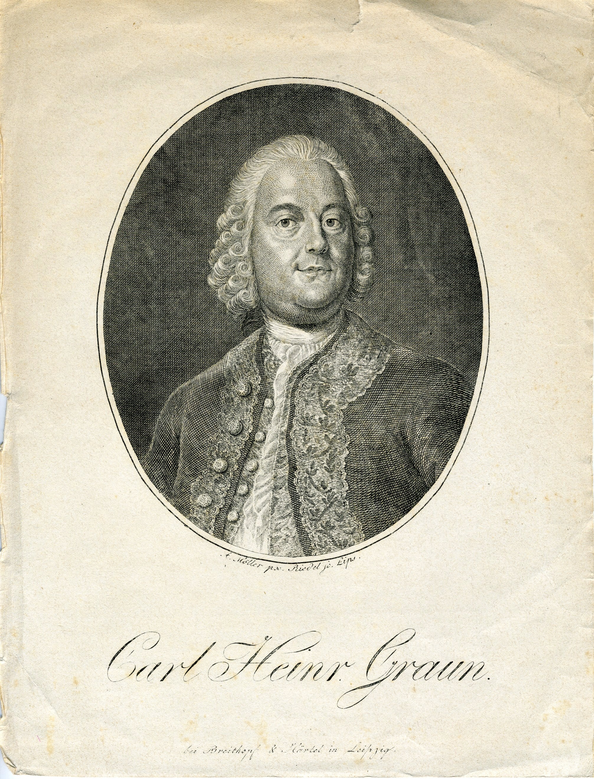 Graun, Carl Heinrich. (1704-1759). Engraved Portrait. Leipzig: Breitkopf & Härtel.
