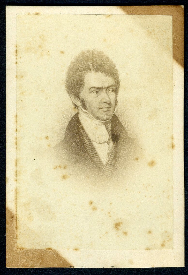 Carte de visite photographic reproduction of a portrait of the German composer who was a pupil and secretary of Beethoven. Areas of toning to two corners from prior mounting and some foxing, lower edge trimmed; overall in very good condition. 2.5 x 4 inches (6.5 x 10 cm).