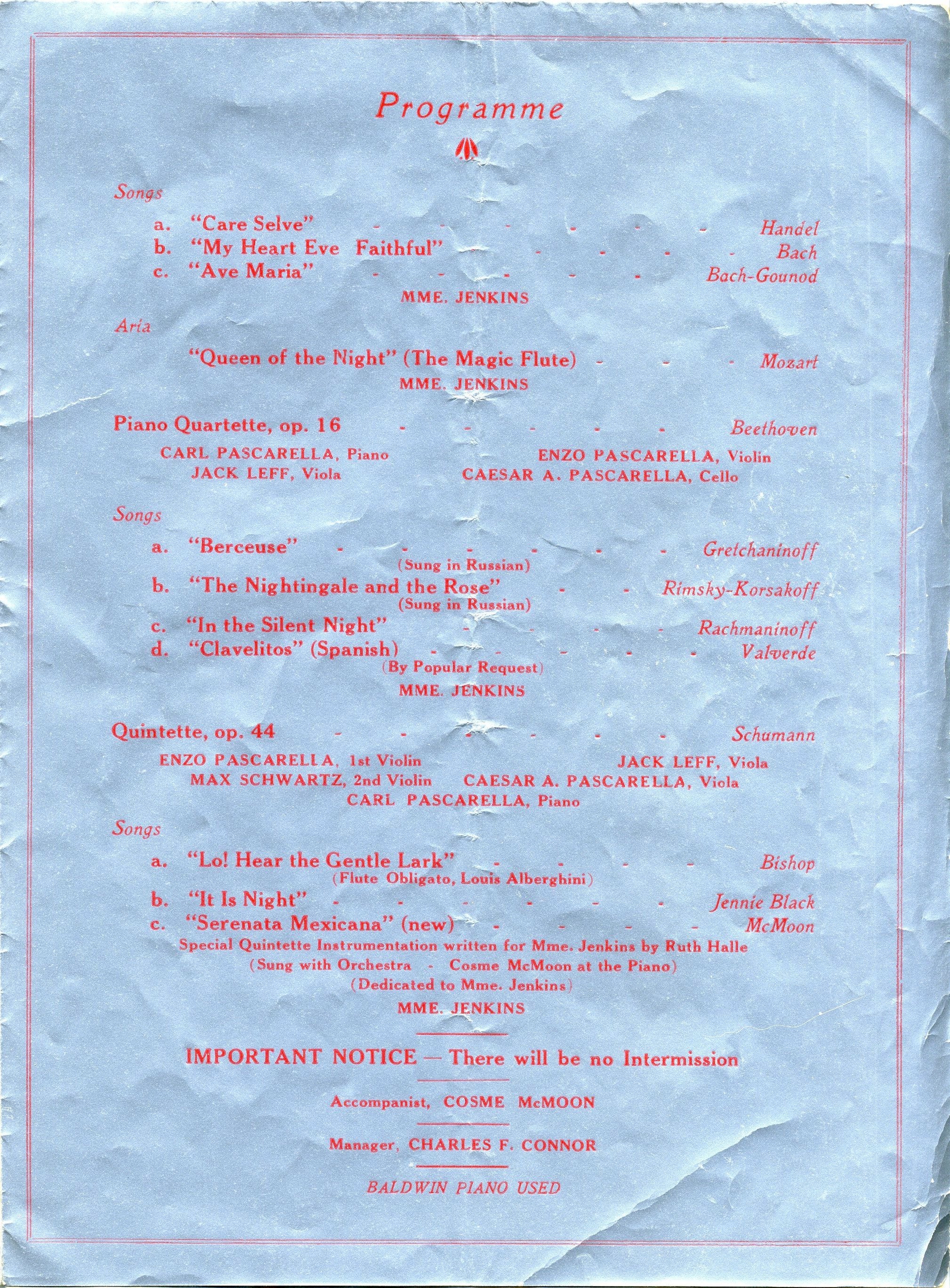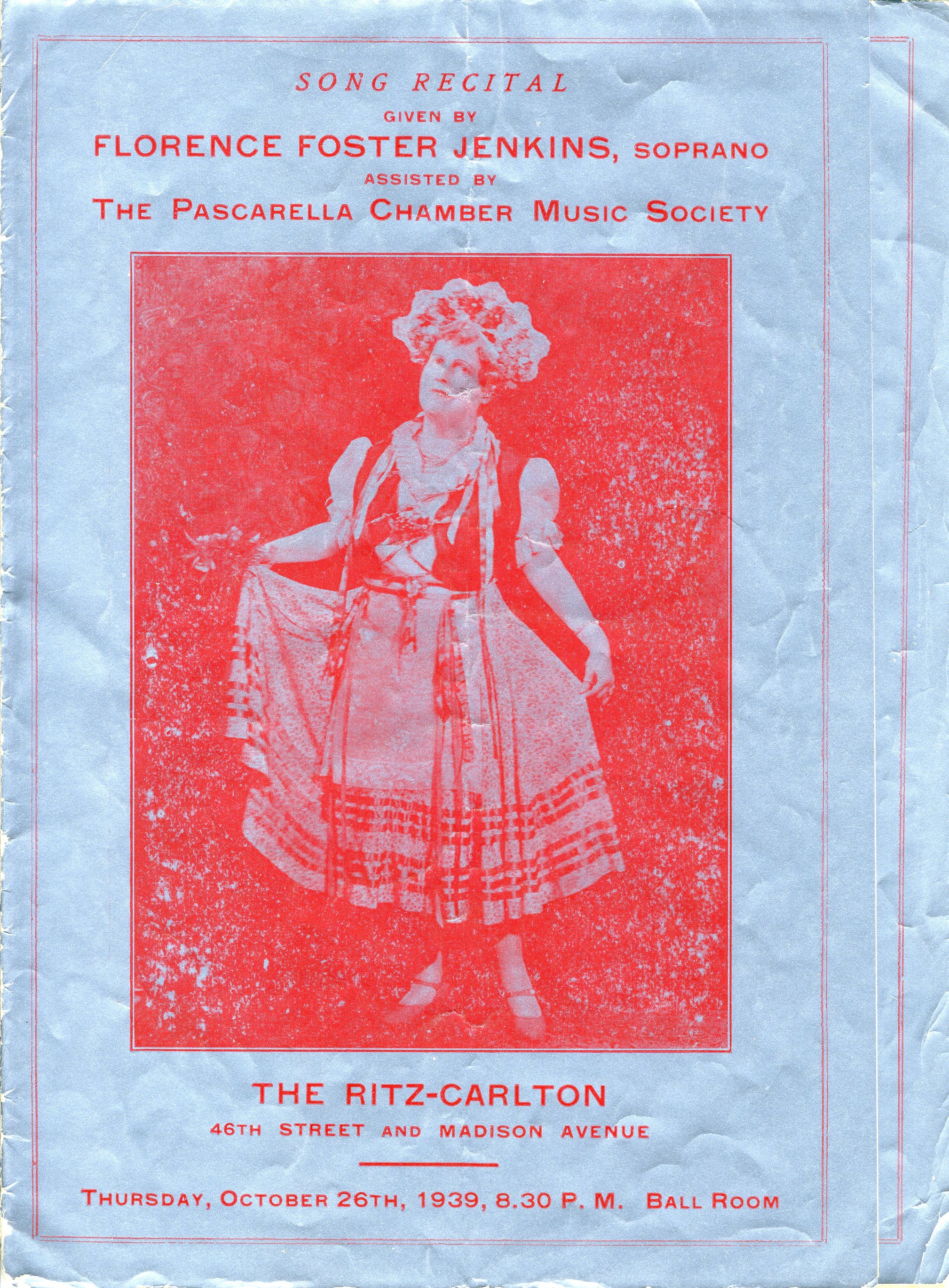 Jenkins, Florence Foster. (1868-1944). 1939 Recital at the Ritz-Carlton - Original Program.