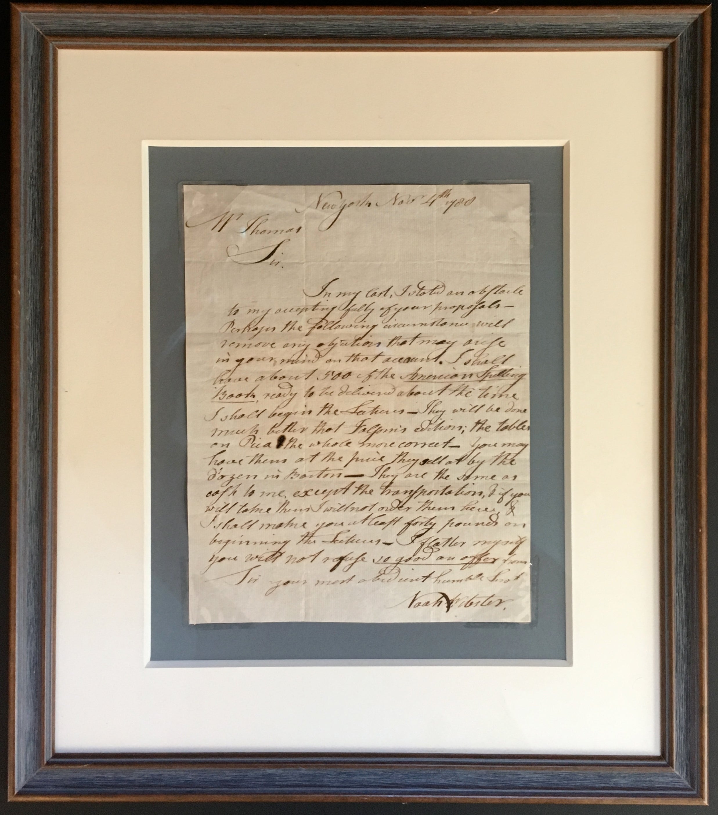 good an offer...“ Integral semi-detached holograph address leaf. 1 page, 4to. Handsomely framed.