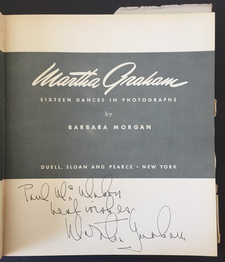 Graham, Martha. (1894–1991) [Morgan, Barbara. (1900–1992)]. Martha Graham, Sixteen Dances in Photographs - SIGNED. New York: Duell, Sloan and Pearce. 1941. Second large printing.