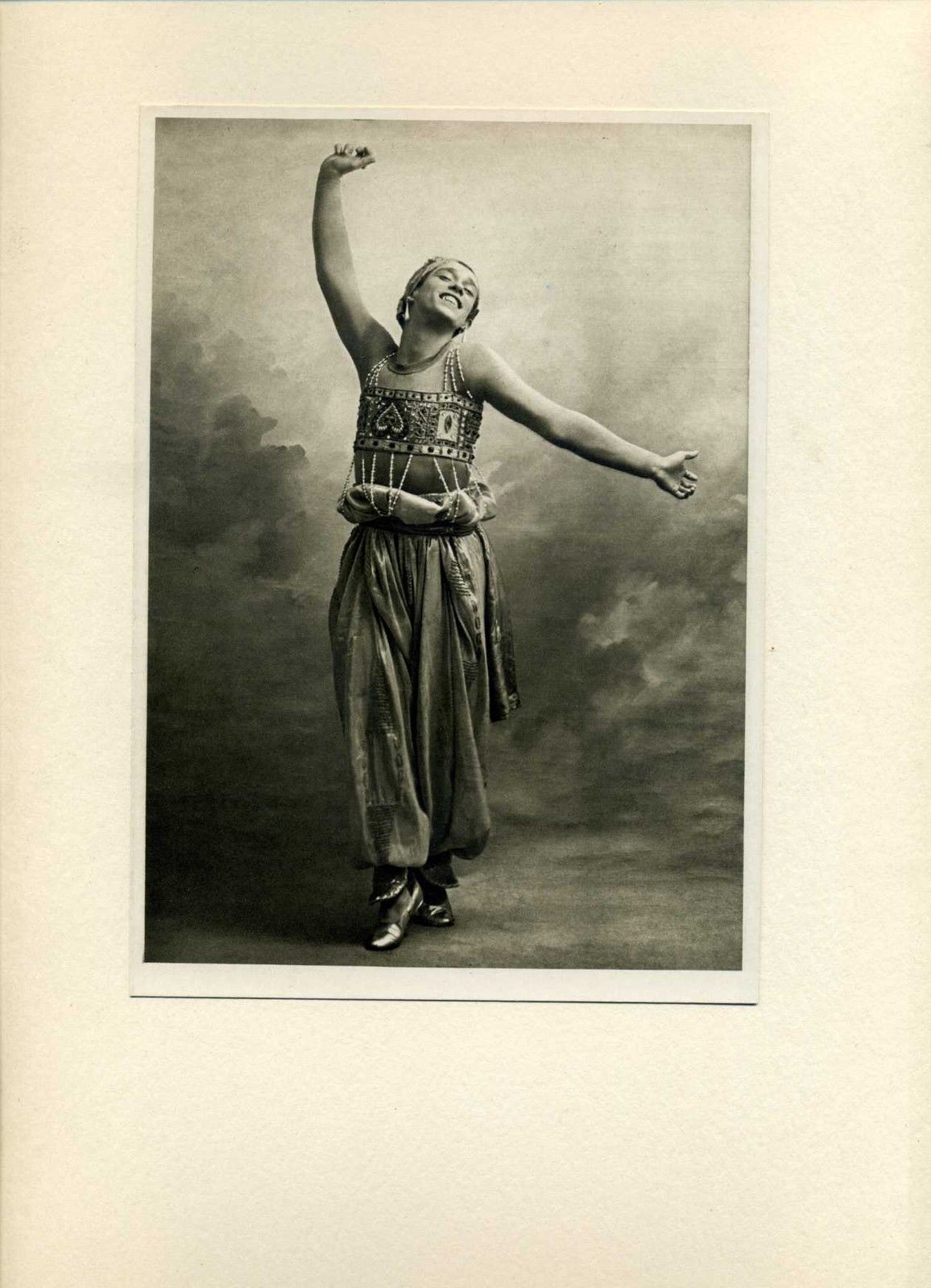 Collection of richly printed photogravures of Ballets Russes dancers by one of the most important portrait photographers of the era. Printed title and fifteen photogravures (each approx. 23.5 x 19 cm), tipped onto individual mounts, loose as issued. Grey paper portfolio (38.5 x 27 cm), with gilt plate to front. The legendary ballerina Tamara Karsavina has signed on the mount beneath her photograph as she appeared in Firebird. Derra de Moroda 1333. Leslie I, 229. Magriel 123.