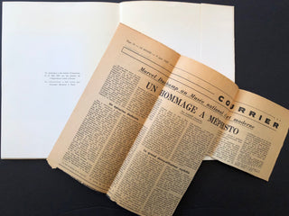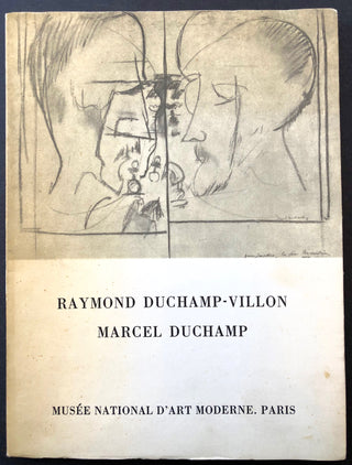 Original catalogue from the 1967 exhibition "Raymond Duchamp-Villon - Marcel Duchamp" at the Musée d'art moderne (Paris), June 7 - July 2, 1967, Signed and inscribed on the title page by Duchamp to Carine Rueff. Paris, July 2, 1967. Spine and left edge toned, a few light spots to paper covers, else fine.