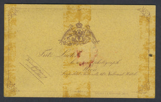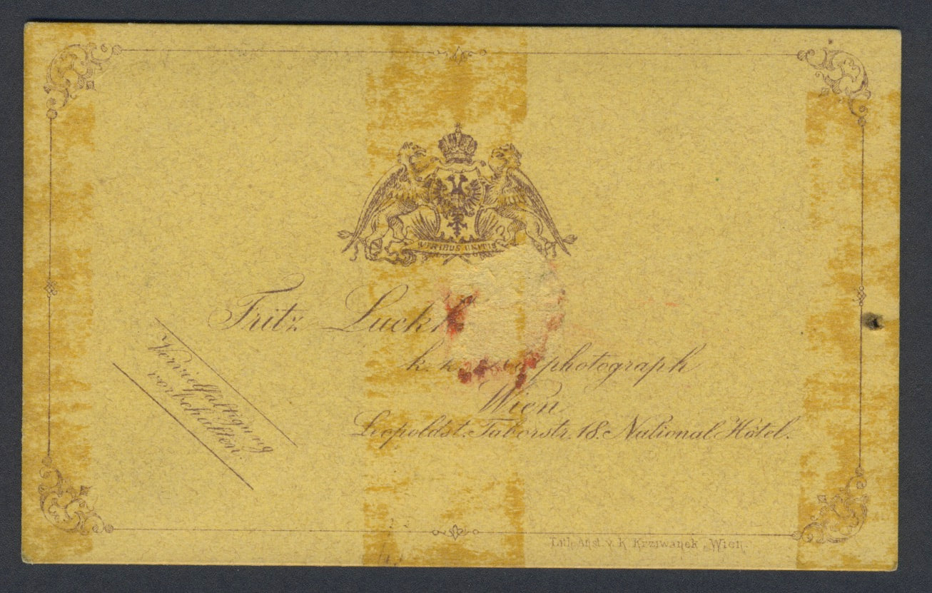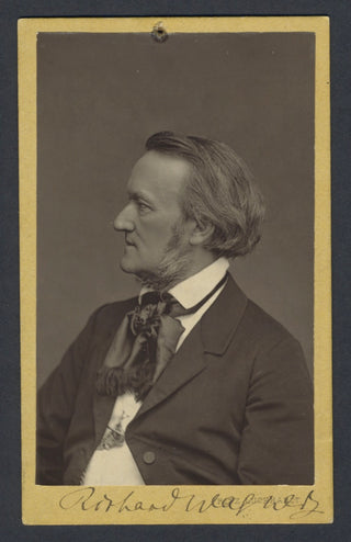 Signed CDV photograph of the great composer, shown in a profile portrait to the left as photographed by Fritz Luckhardt of Vienna. Wagner has signed at the foot, over the photographer's imprint. One thumbtack hole at the head, and some toning to the mount; overall in fine, crisp condition. 2.5 x 4 inches (6.4 x 10.3 cm).