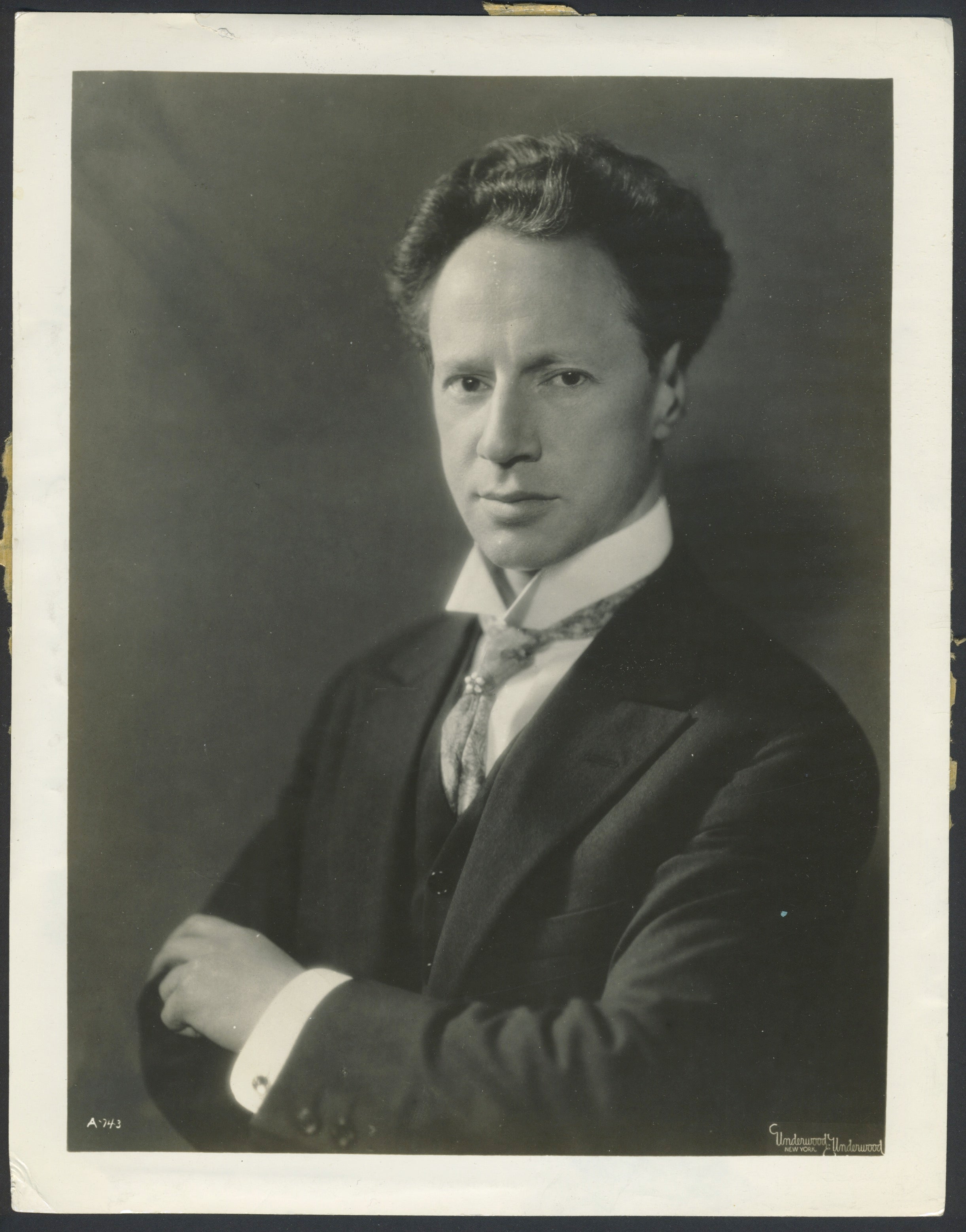 Gabrilowitsch, Ossip. (1878–1936). Portrait Photograph. Vintage photograph of the Russian-born pianist and conductor, shown in a studio portrait by Underwood & Underwood of New York. Tape remnants on the verso; otherwise in fine condition. 8 x 10 inches (20.2 x 25.7 cm).