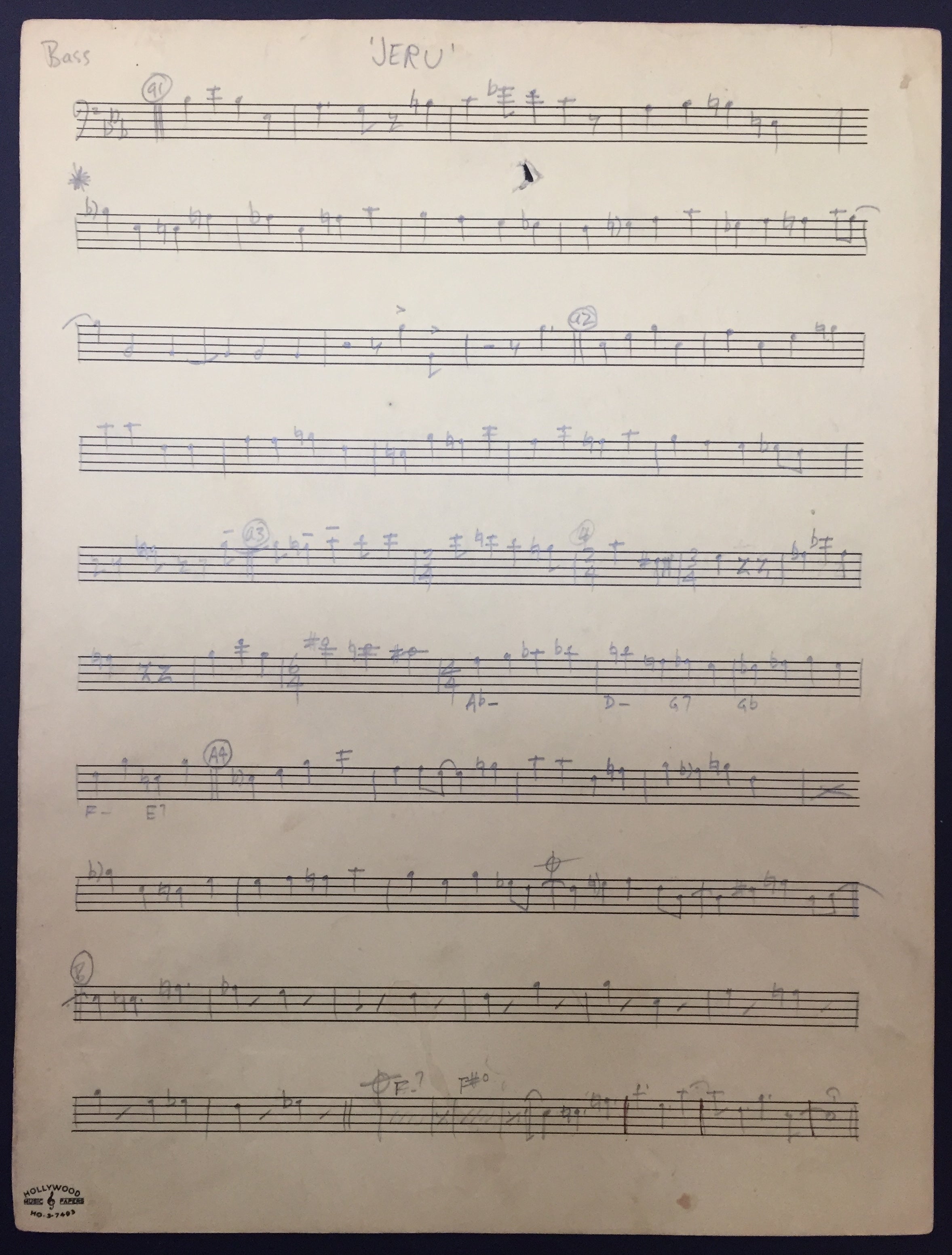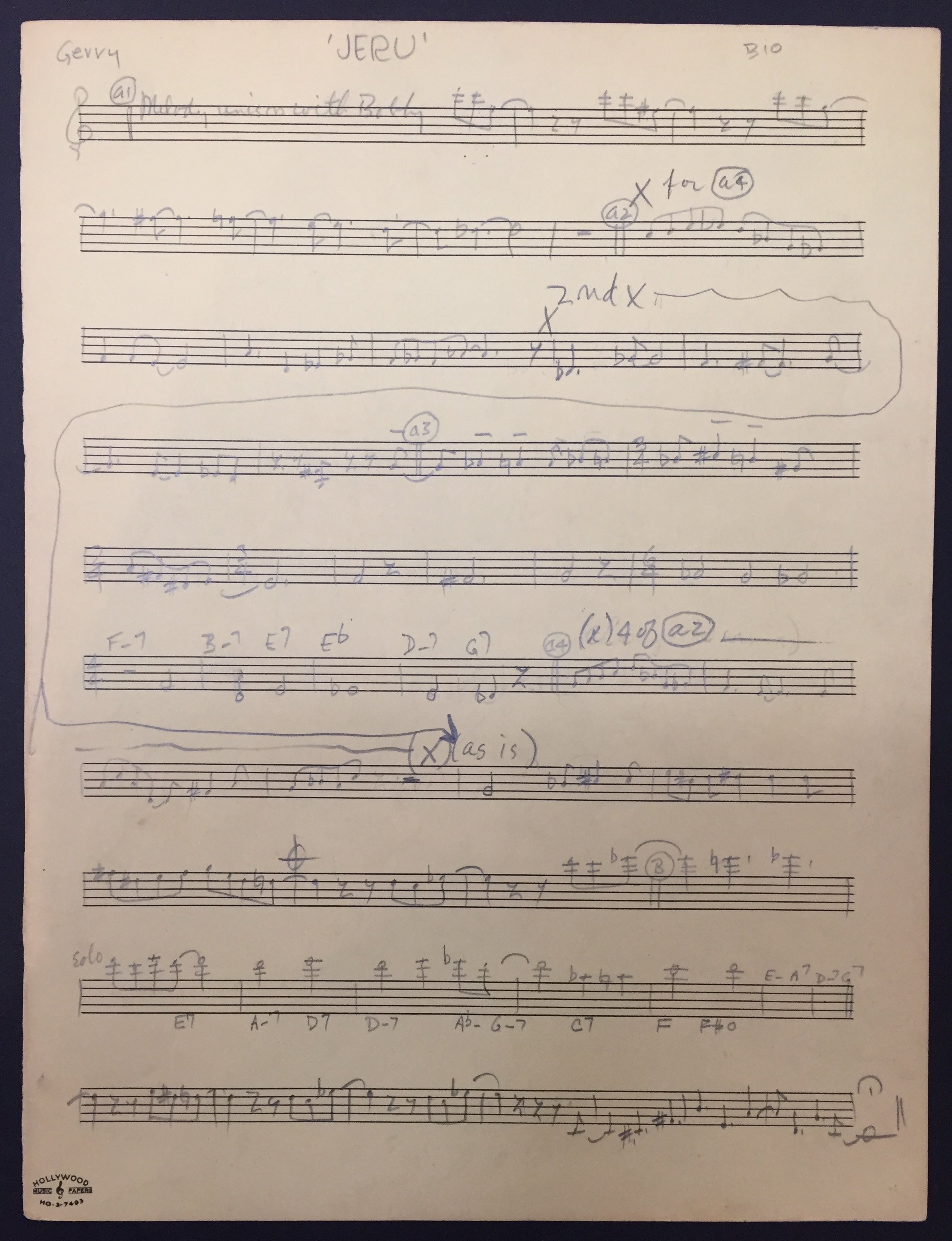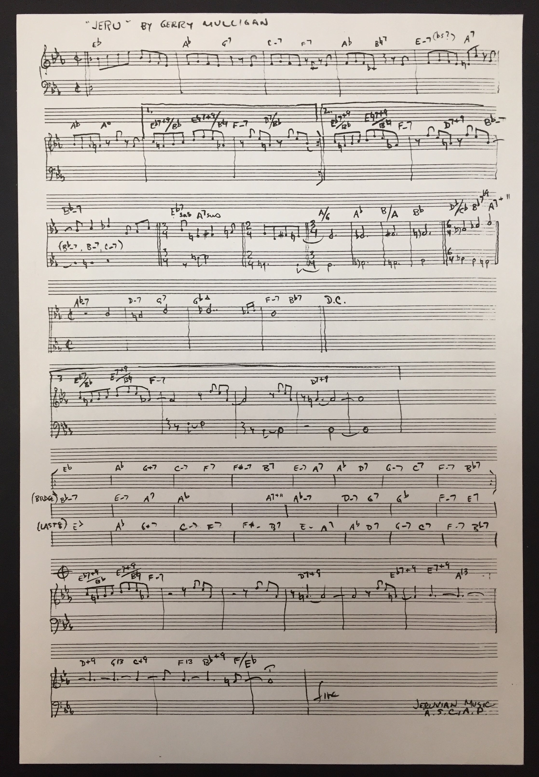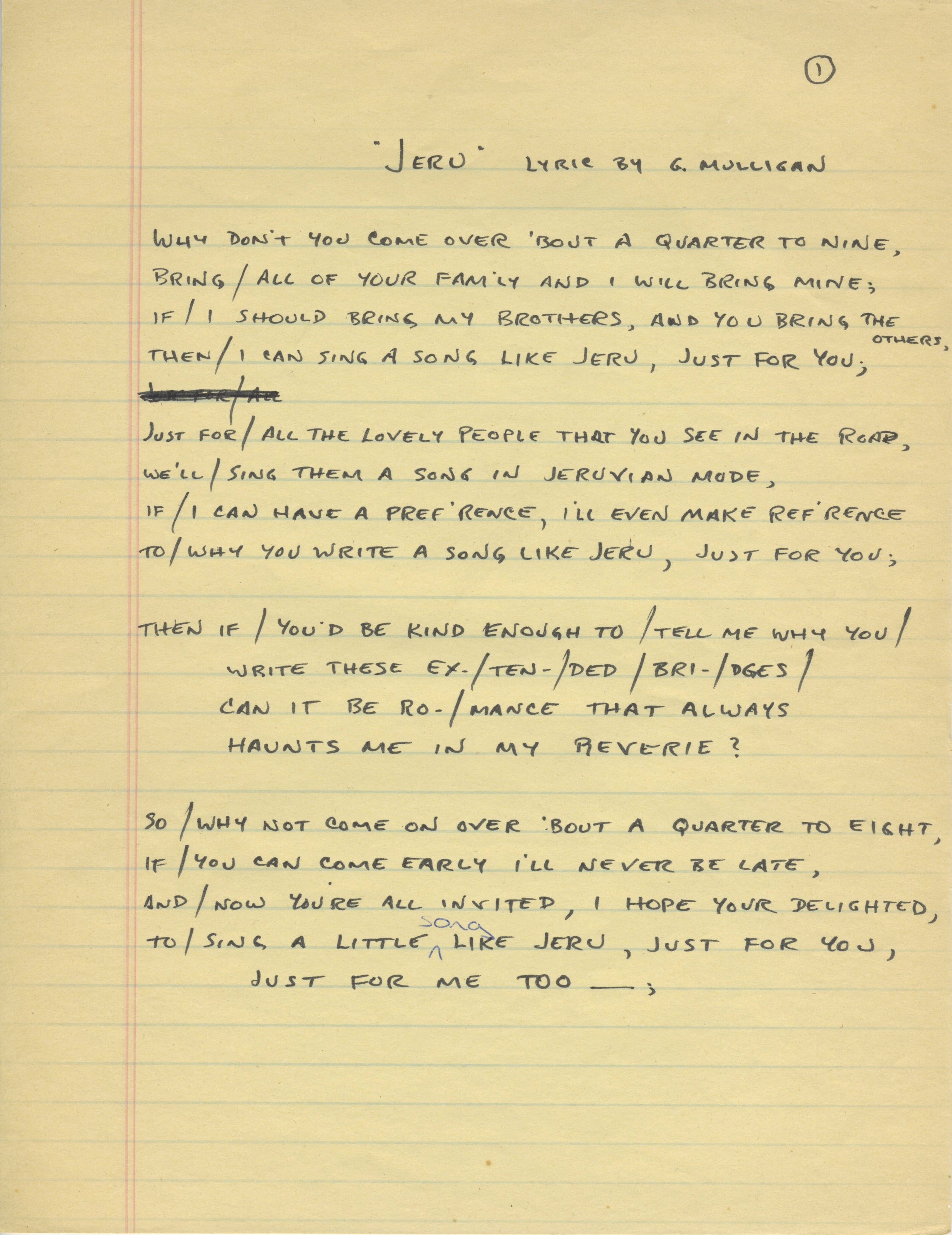 Mulligan, Gerry. (1927-1996). "Jeru" - Autograph Lyrics and Musical Manuscripts.