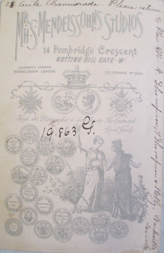 Original cabinet card photograph of the French composer and pianist, who is shown leaning on her elbow while seated at the piano. Photographed by H. S. Mendelssohn of London. 6.6 x 10.8 cm. Some notations on the verso, else fine.