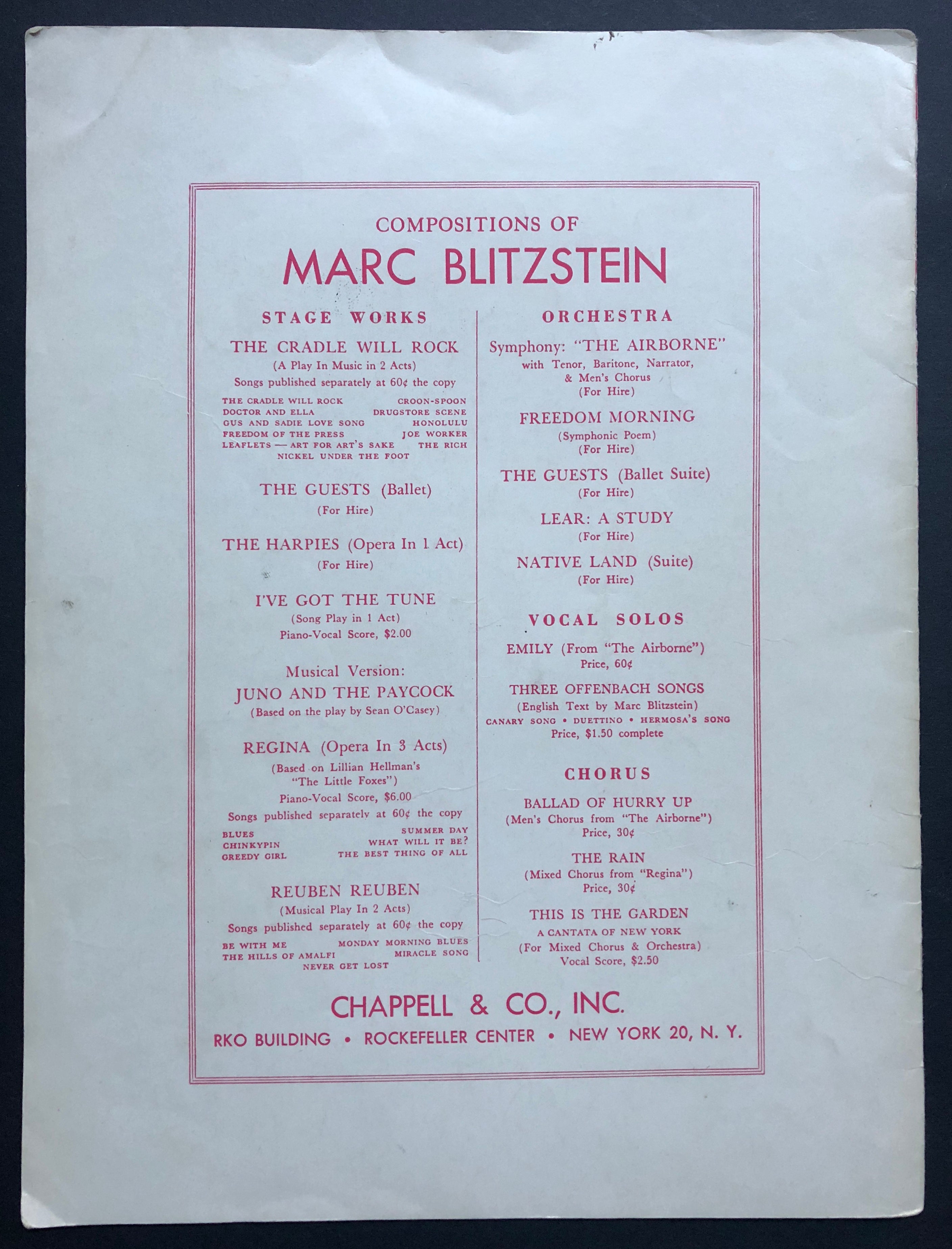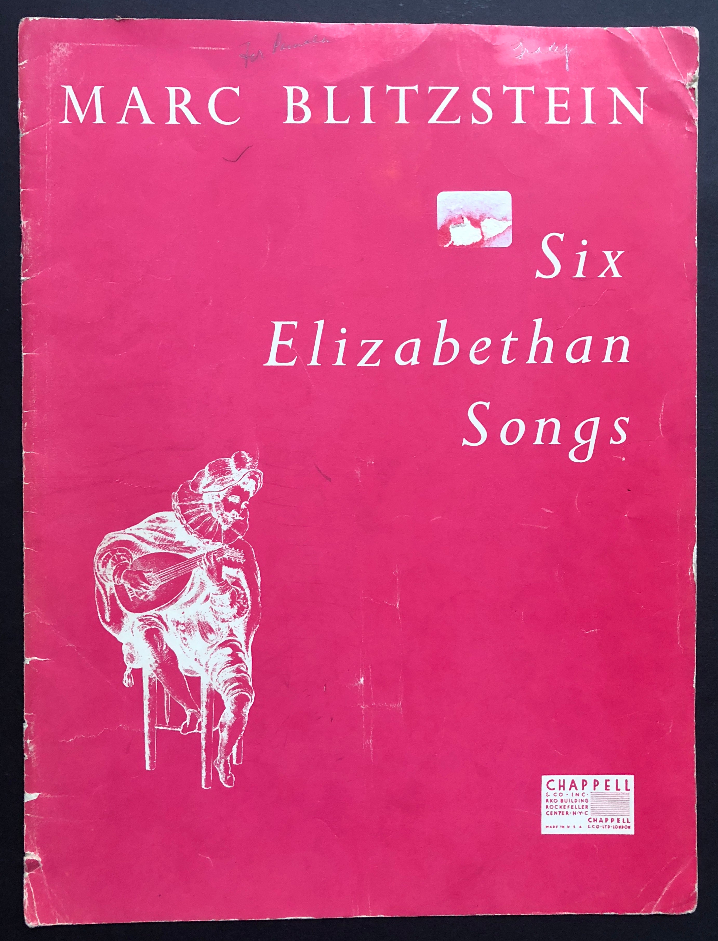 Group of art songs on Shakespearean texts, composed for the American Shakespeare Festival Theatre and dedicated to Leonard Bernstein. 20 pp. From the collection of bass-baritone Edward Zambara, with his ownership signature to the title. Shelf wear and a spine split to the wrappers; overall very good. 9 x 12 inches.