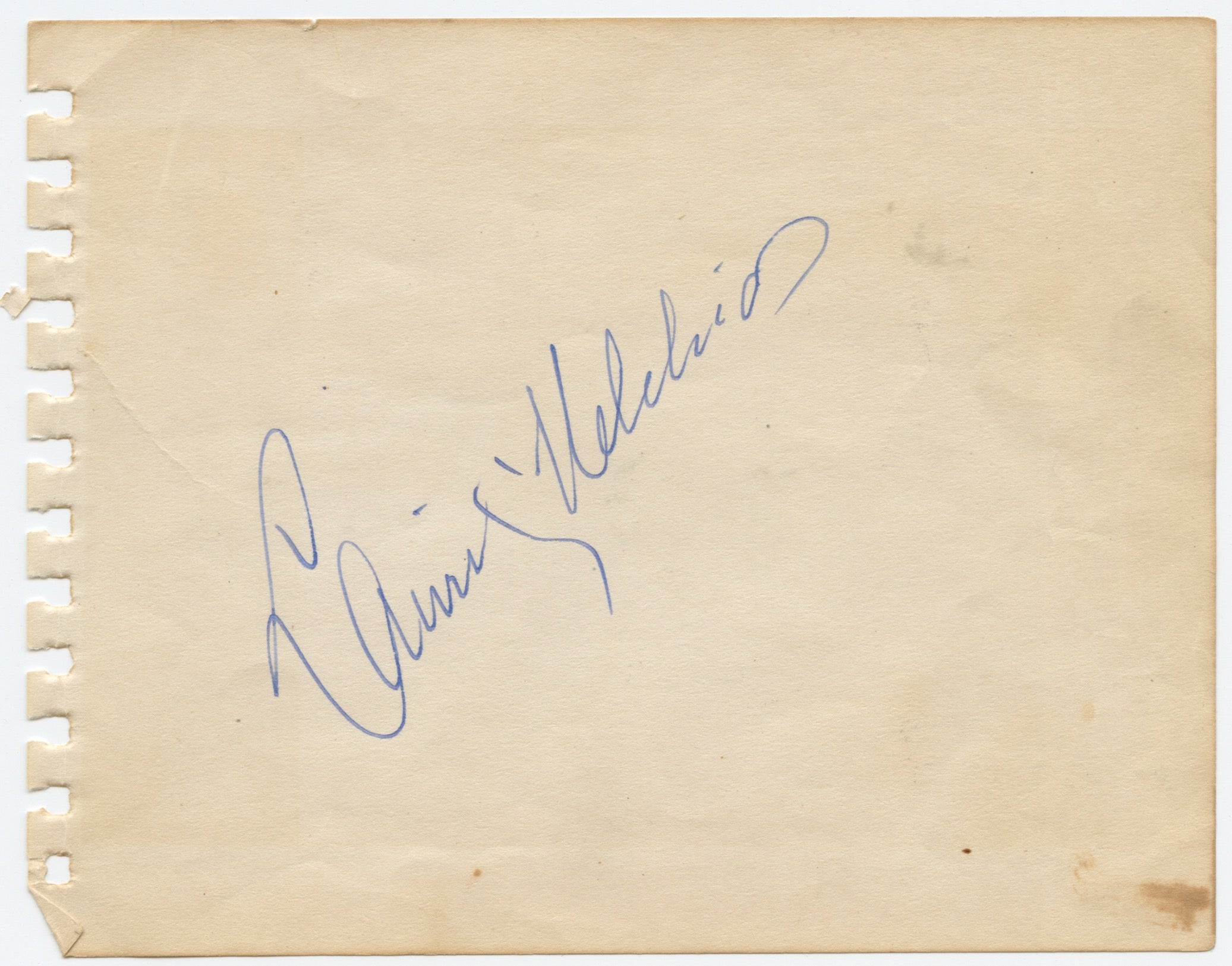 Autograph signature from the Danish-American opera star, known as the quintessential Wagnerian tenor. Signed on a small album leaf, 5.5 x 4.5 inches (14.5 x 11.5 cm). Very good.