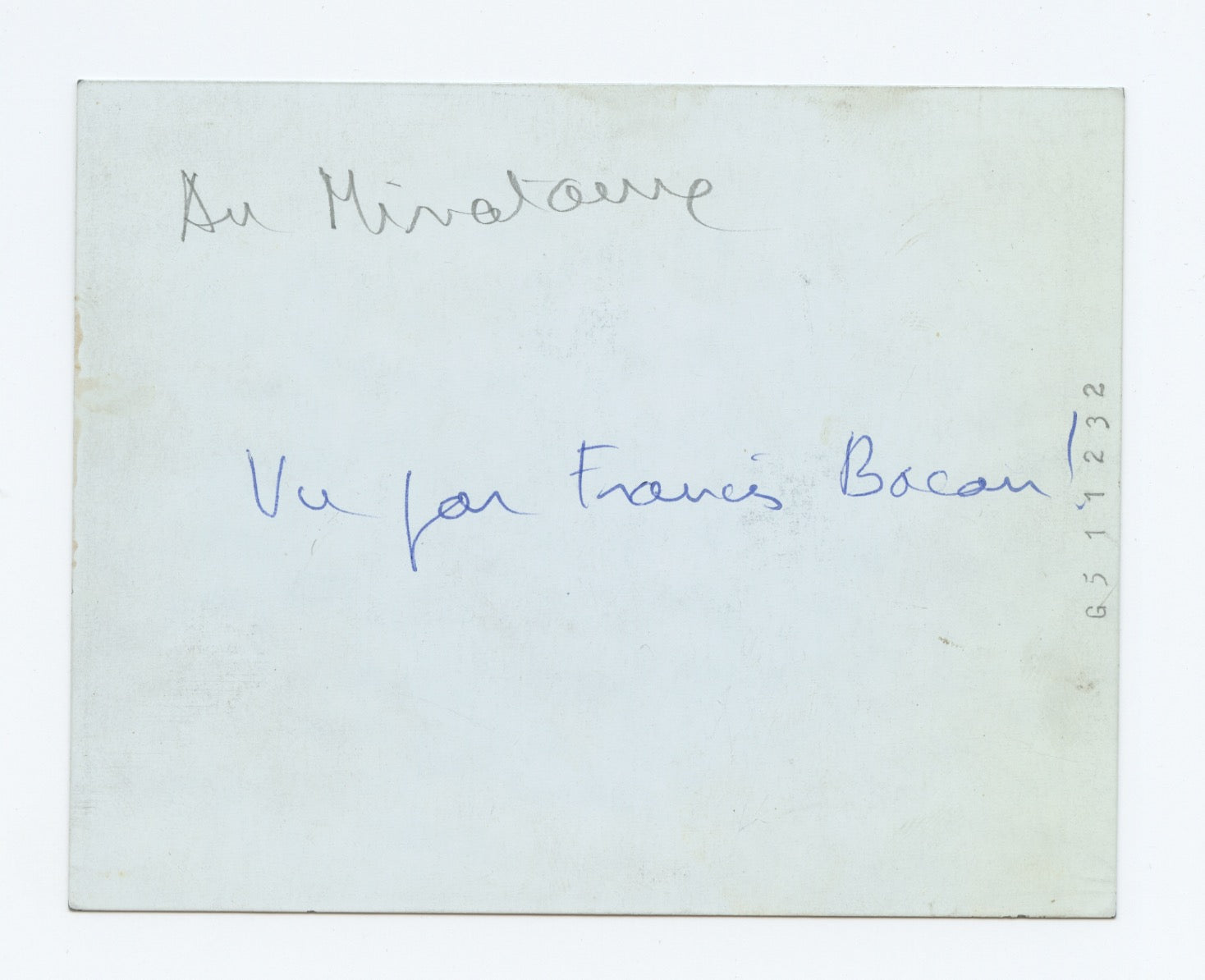 Francis Bacon famously found inspiration in photographs, film stills, and mass-media imagery and after his death thousands of photographic prints, magazine reproductions, scientific manuals, were found littered around his London studio. Many were taken by photographer friends – notably John Deakin, his fellow denizen of Soho’s Colony Club, and the wildlife photographer Peter Beard – but he also culled a huge number from published sources and occasionally took photographs himself. For all his brilliant legacy of portraits, he only ever painted four sitters from life and the rest from photographs, this allowing him the space and time for behind the scenes planning. Examples of Bacon's own photographs are reproduced in, among others,"In Camera - Francis Bacon: Photography, Film and the Practice of Painting" (Martin Harrison, 2005), but we trace no original examples of his photography ever appearing at auction or on the secondary market, all verified examples having evidently been retained by the Estate. The present photograph, with remarkable provenance, thus represents a unique opportunity for the collector.