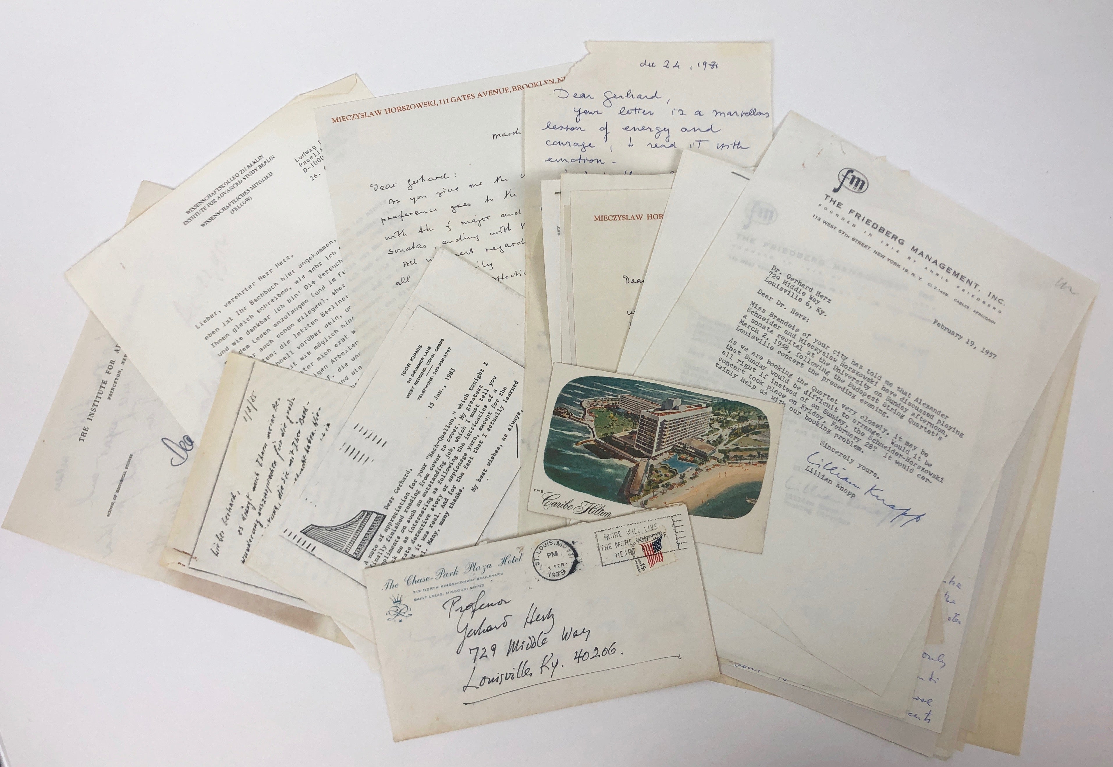 Schneider, Alexander. (1908–1993) & Horszowski, Mieczyslaw. (1892–1993) [Herz, Gerhard. (1911–2000)]. Collection of Letters to Gerhard Herz.