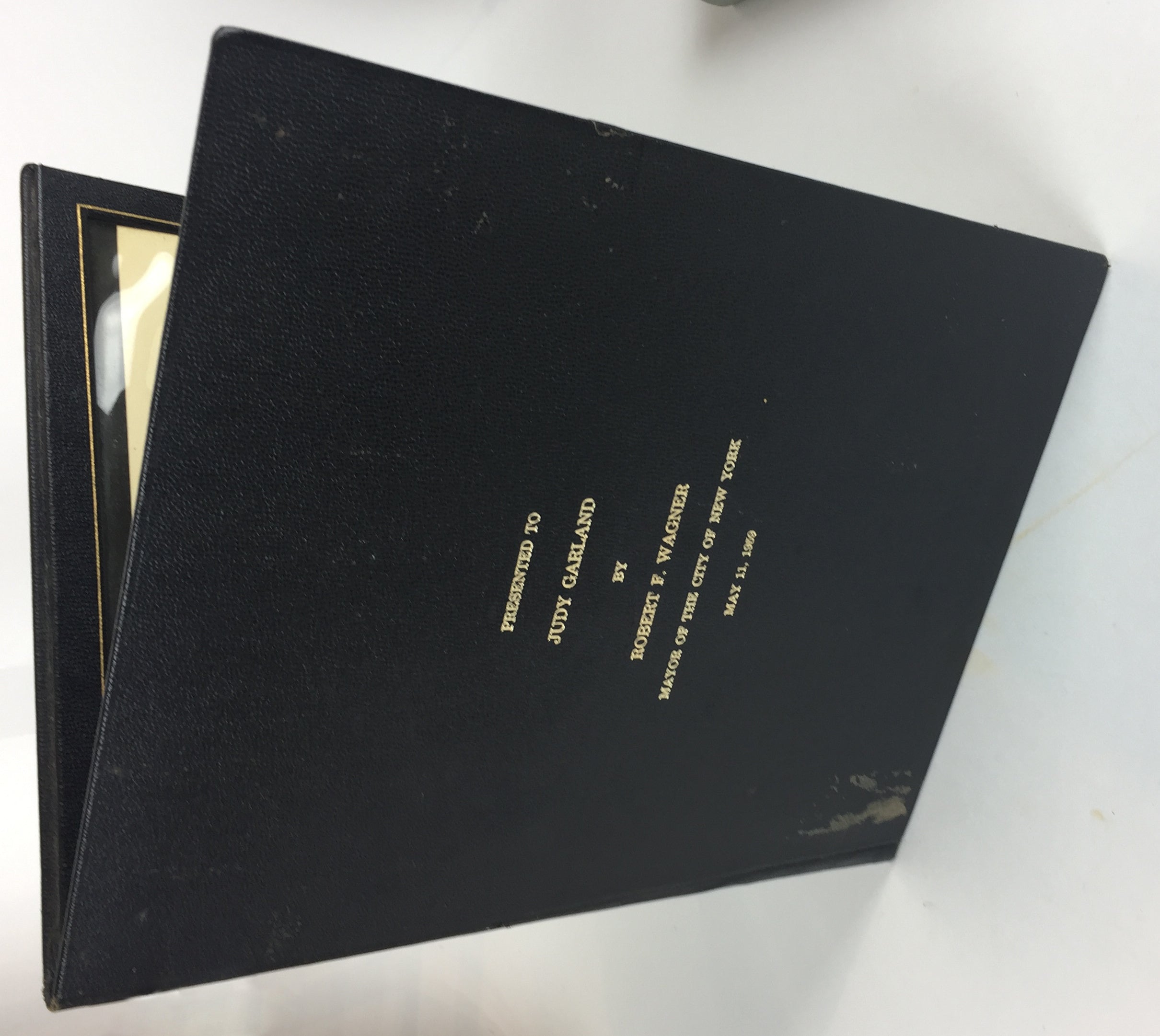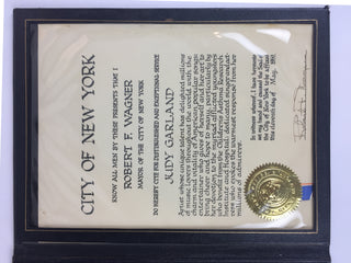 Garland, Judy. (1922–1969). Judy Garland Award Proclamation from New York City Mayor Robert F. Wagner in Custom Presentation Folder.