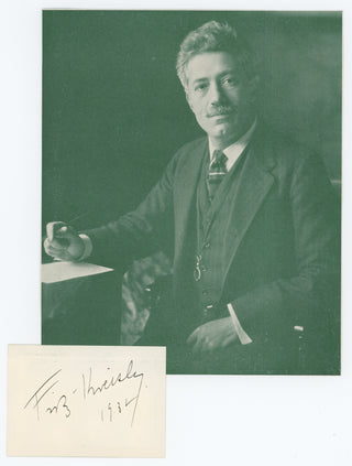 Signed card dated 1934 from the important violinist, mounted to a half-tone photograph clipped from an unidentified publication. Fine. Card measures 3.25 x 2.25 inch (8.2 x 5.7 cm.), photograph 6 x 7.25 inches (15.2 x 18.4 cm.).