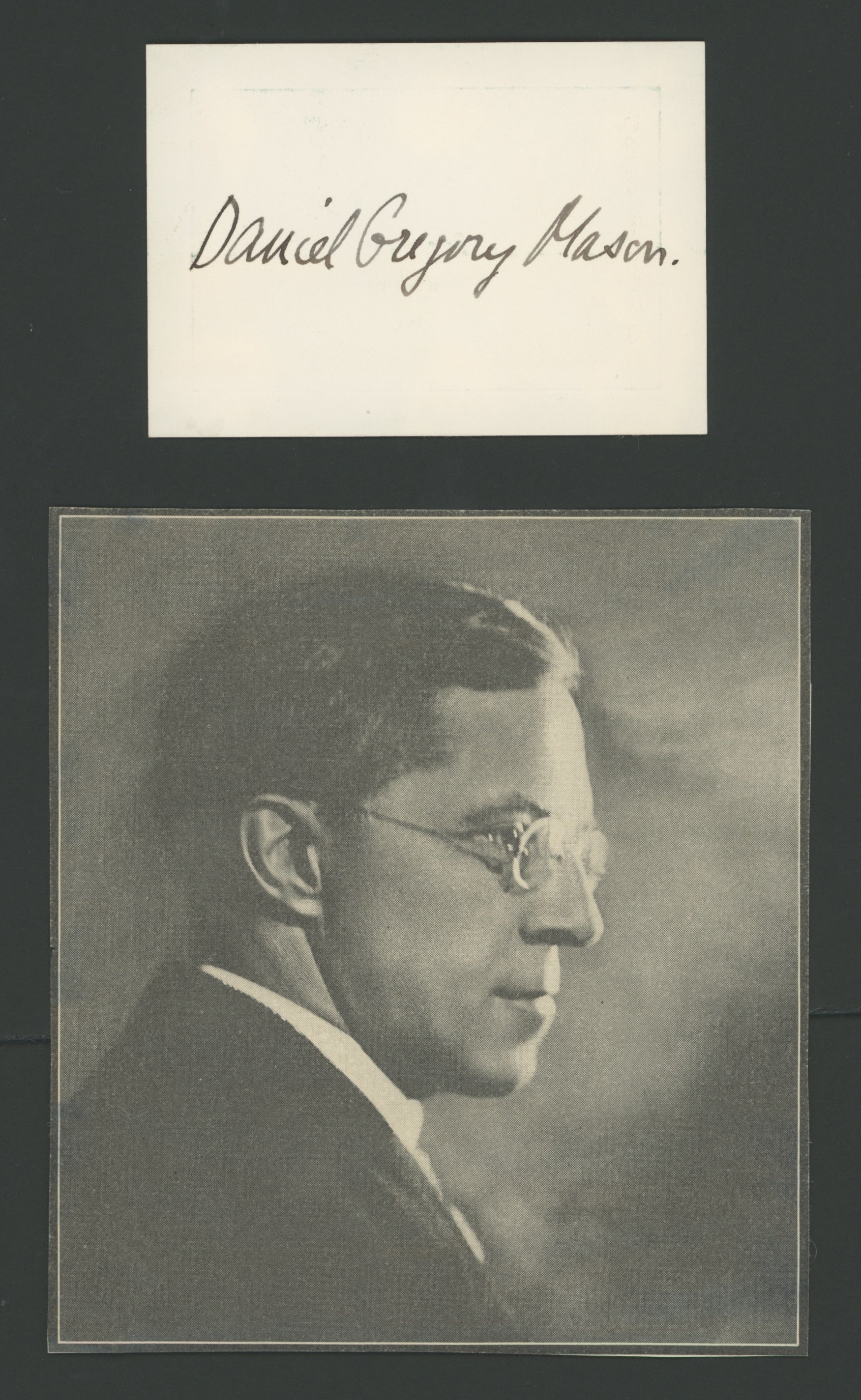 Mason, Daniel Gregory. (1873–1953). Signed Card with Photograph.