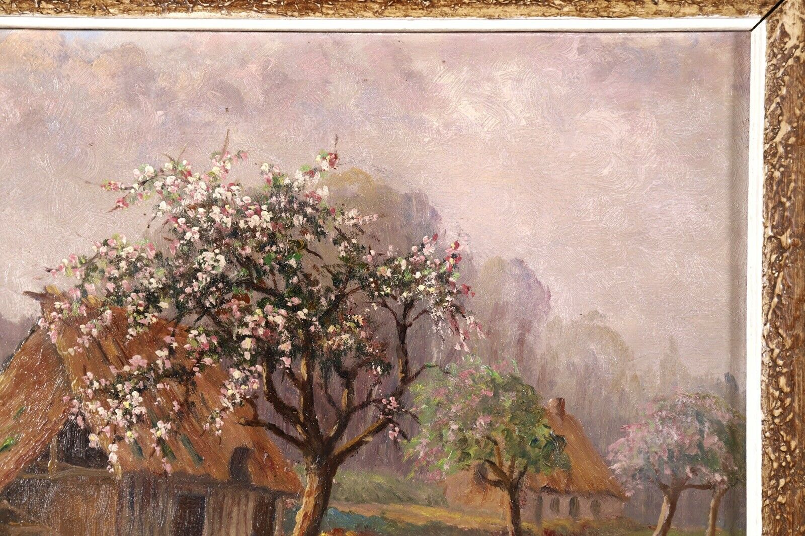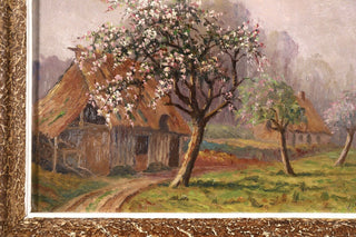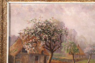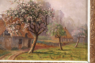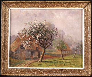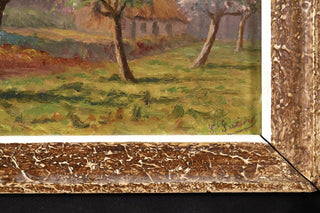Saint-Saëns, Camille. (1835–1921) [Attributed to]. "Saint-Valery-en-Caux - Spring" - Oil Painting. Charming oil painting of a white cherry tree in bloom in the Normandy countryside, apparently painted and signed by the French composer. While the composer is known to have made artworks of various kinds, we have never previously offered a painting by him and indeed, we find the signature in paint is unlike his usual penmanship. This is not so unusual, and a number of other works in this same style have appeared over the years at French auction houses, all likewise attributed to the composer of this name. That said, please note that the work is sold as "attributed to." In very fine condition. 11 x 9 inches, framed to 13 x 11 (33 x 27.9 cm.).