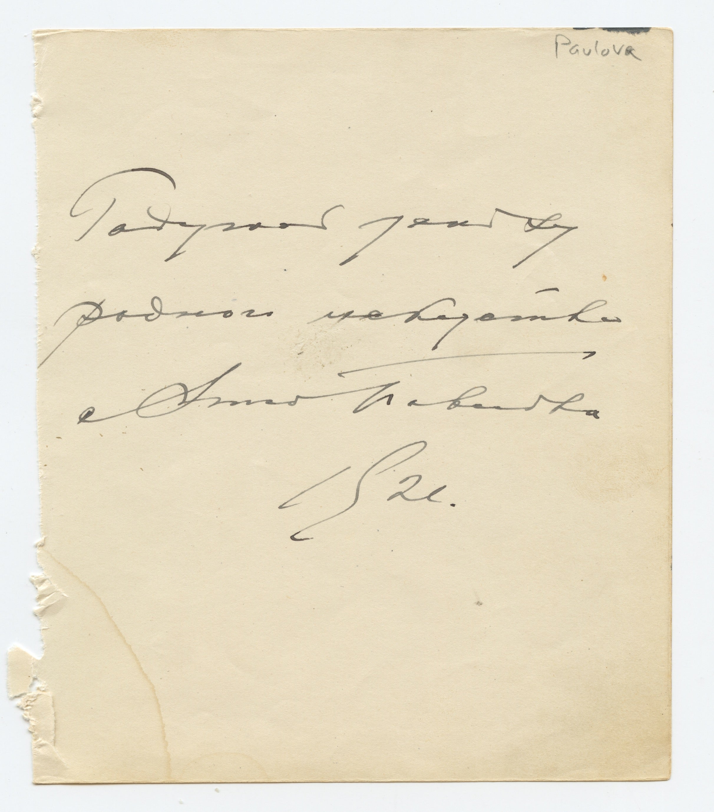 Pavlova, Anna. (1881–1931). Autograph Signature.