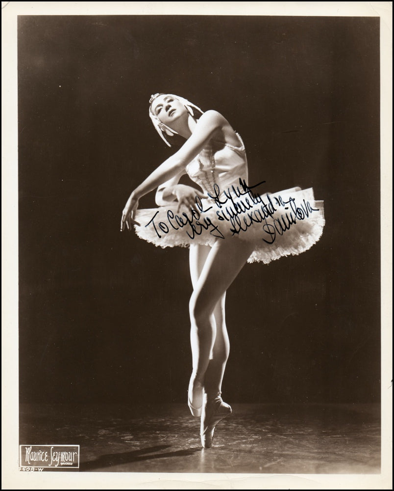 [Ballets Russes] Danilova, Alexandra. (1903–1997). Signed Costume Photograph. A very fine original Maurice Seymour 8 x 10 inch photograph, boldly signed and inscribed by the great Russian dancer. One corner dinged, otherwise excellent.