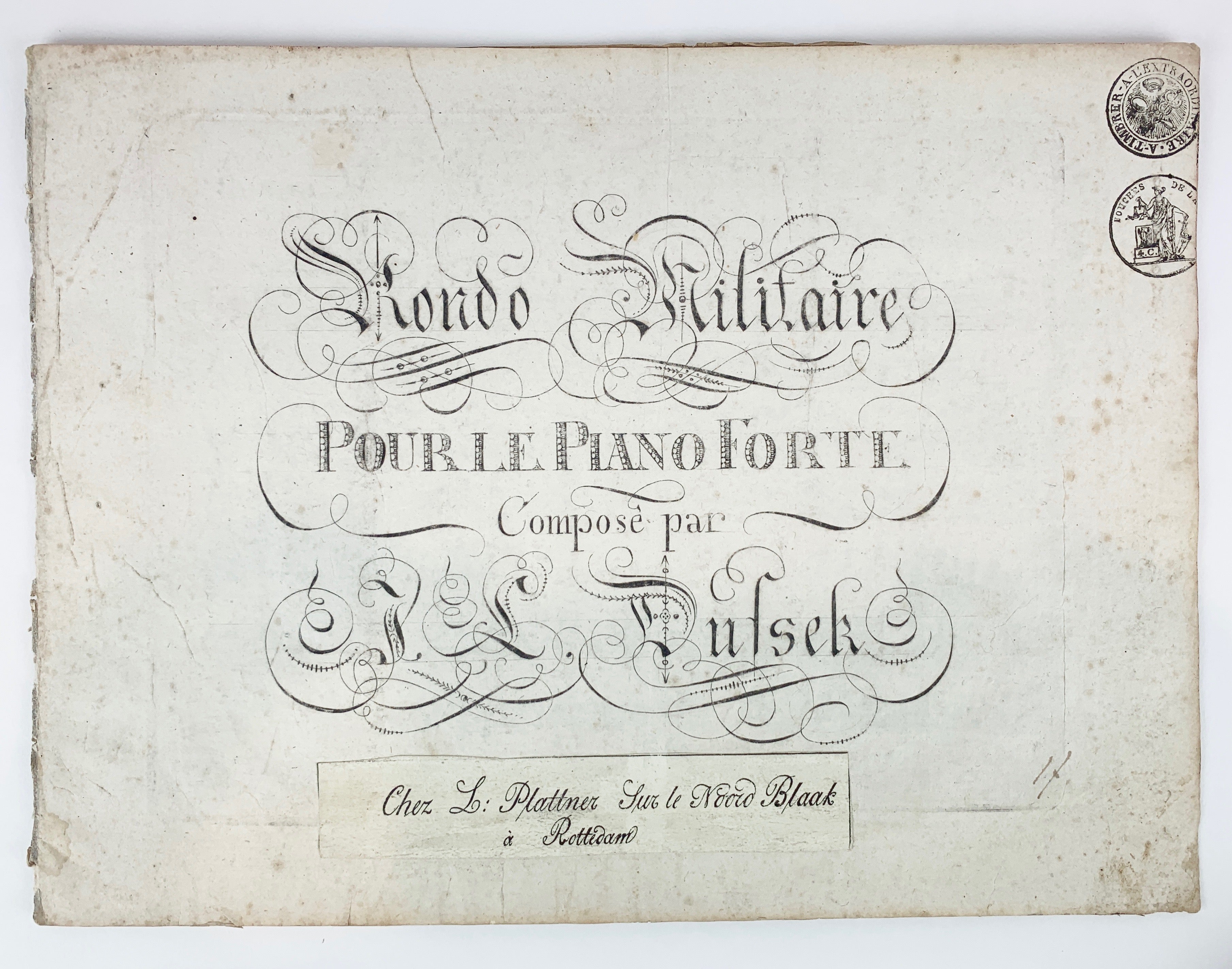 Rondo Militaire Pour le Piano Forte Composé par J. L. Dussek. Chez L. Plattner, Rotterdam. [PN 5] Title, 2-9. Engraved throughout. Disbound.