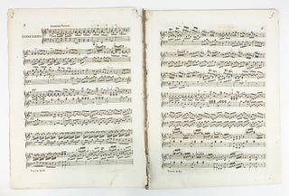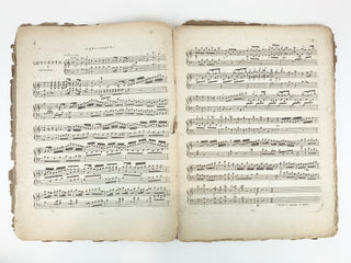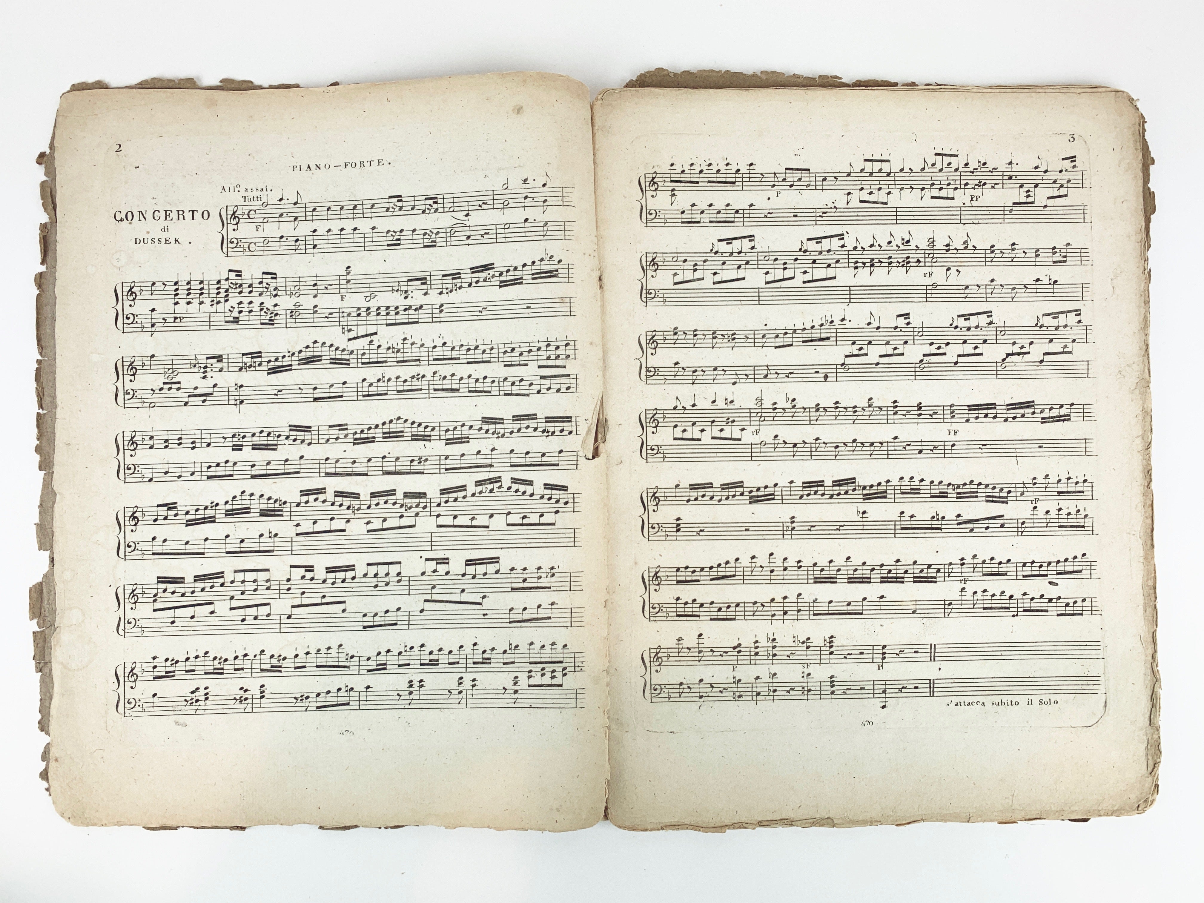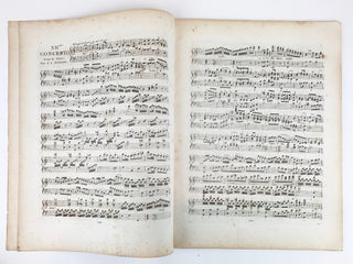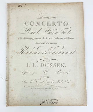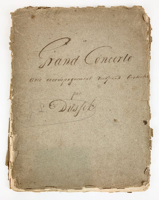 Grand Concerto Pour le Pianoforte avec accompagnement de grand Orchestre composé par J. L. Dussek. Oeuvre 66. Breitkopf & Härtel, Leipsic, with later publisher's ticket laid over the original publisher imprint. [PN 470] Title, 2-28. Engraved throughout. Additional hand-labeled wrappers. Disbound.