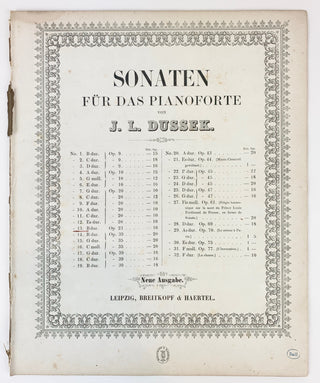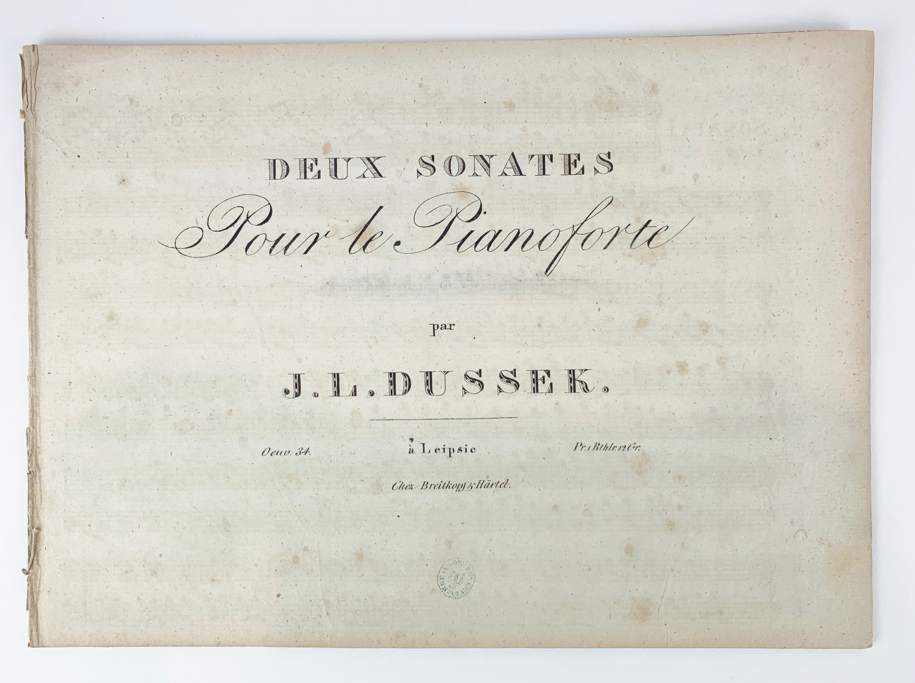 Deux sonates Pour le Pianoforte par J. L. Dussek. Oeuv. 34. Chez Breitkopf & Härtel, Leipsic. [PN 2654] Title, 2-22. Engraved throughout. Disbound.