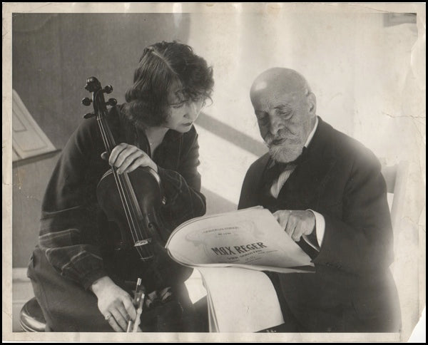 A superb original photograph of the important violinist and influential pedagogue, teacher of Elman, Heifetz, Milstein, Zimbalist, Parlow, Schumsky and many others! An International Newsreel photograph, 8X 10 inches with a few repaired creases, tears, and one corner chipped. Auer is shown pointing to a Max Reger score with an unidentified student looking on.