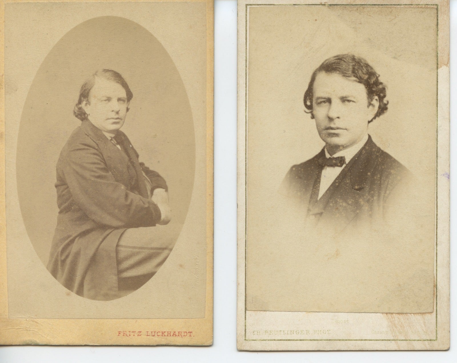 Pair of CDV portrait photographs of the great violinist, one by Fritz Luckhardt of Vienna and the other by Reutlinger of Paris. Some inscriptions on the reverse of the photographs in other hands, one dated 1873-1874. Scattered speckling to the albumen, scattered stains, mostly to the Reutlinger photograph, else fine. 2.5 x 4 inches (6.5 x 10.5 cm).
