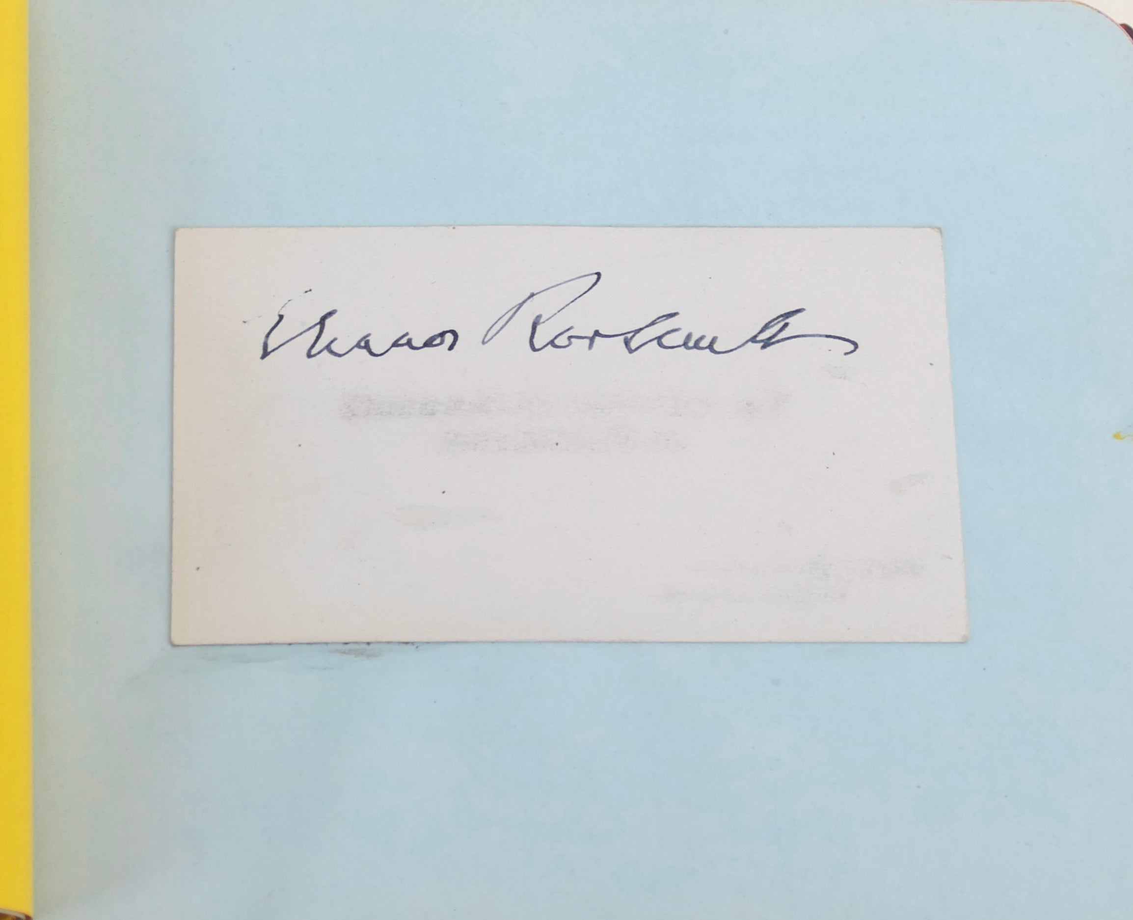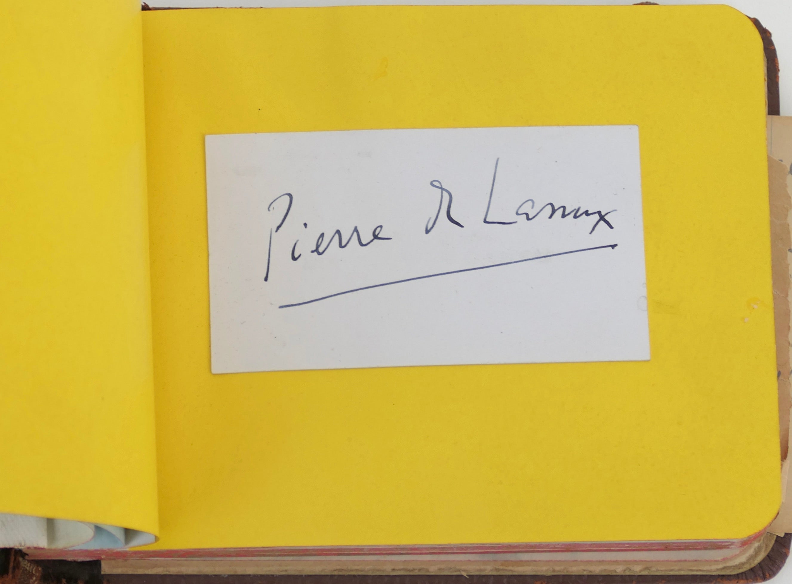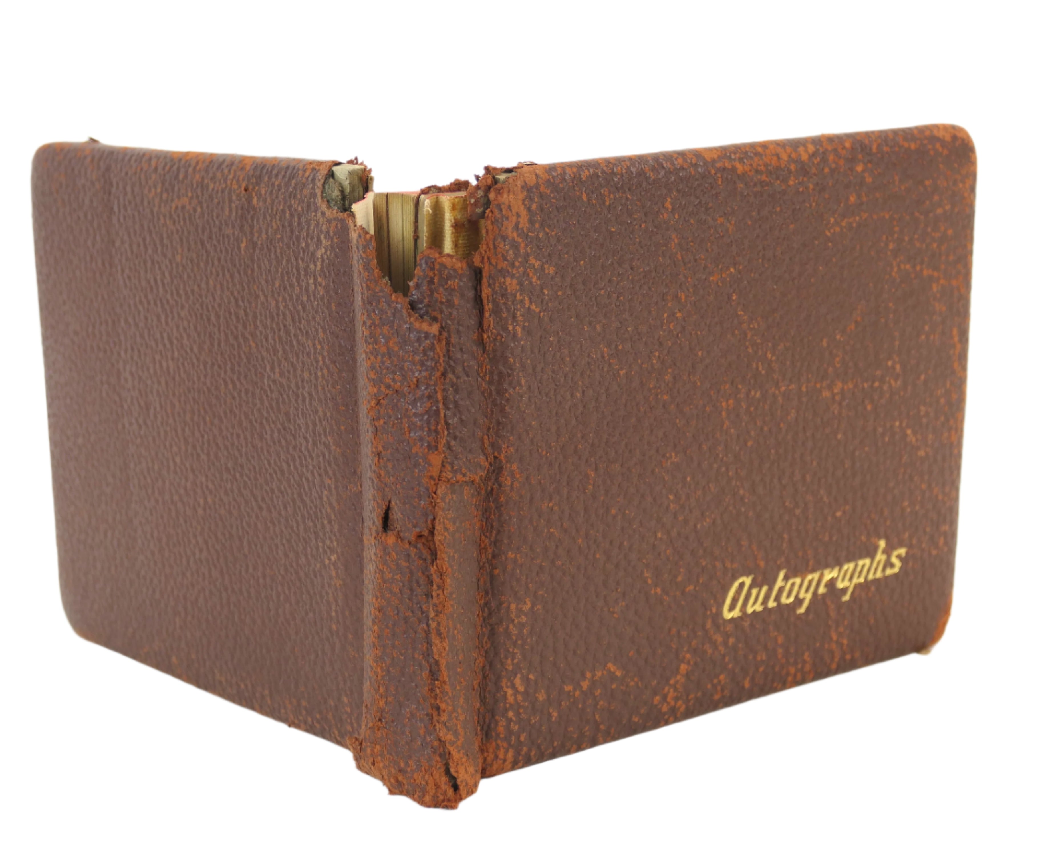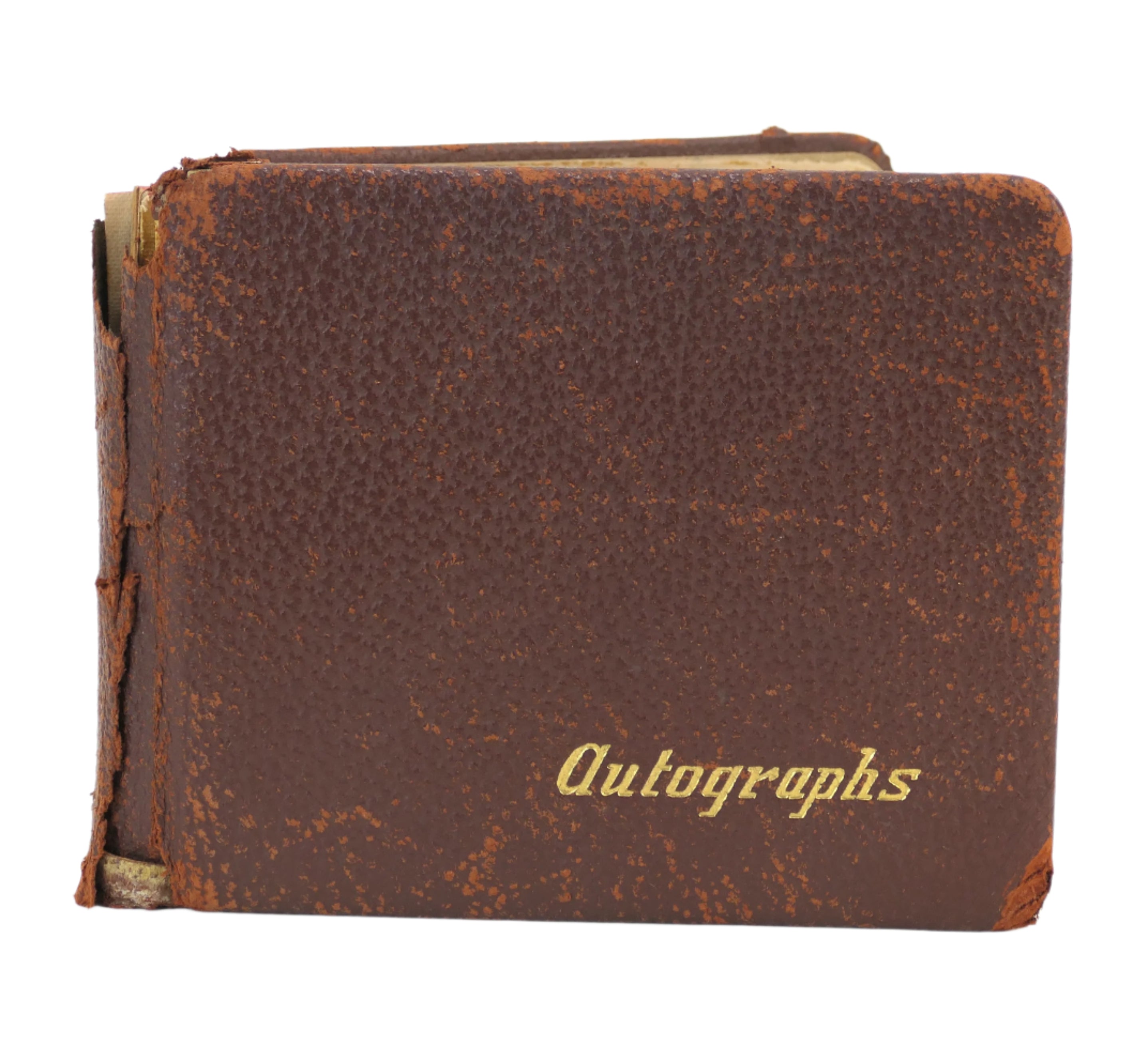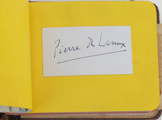 Vintage autograph album, including seven signed pages, a few of which are family or unidentified, but including the following either written directly into or on pasted-in cards: