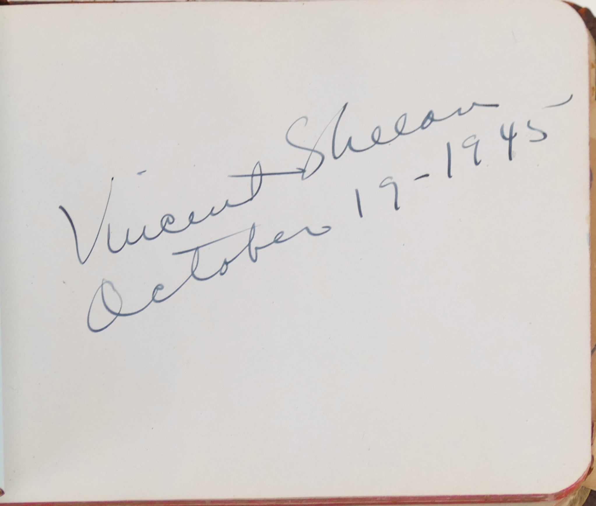 Vincent Sheean (1899-1975), American journalist and novelist, most famous for Personal History became the basis for "Foreign Correspondent" (1940) directed by Alfred Hitchcock.