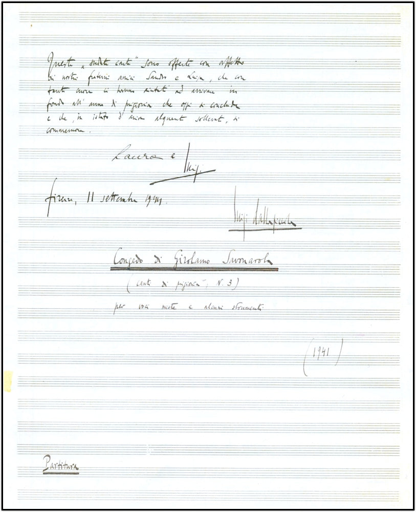 The history of the manuscript and the fascinating circumstances by which it was given to the Materassi family are related in an unpublished essay by Mario Materassi (“Concerning the Dallapiccola Manusrcipt”), the full version available by request. A few excerpts follow here: