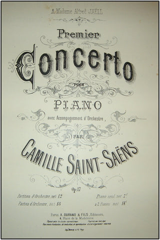 Saint-Saëns, Camille. (1835-1921). Premier Concerto pour Piano. Op. 17. Paris: Durand. [1875]. Avec l'accompt. d'orchestre reduit pour un 2ieme Piano. Score. Large folio. 53 pp. [PN] 2035. In original printed brown wrappers. In very good condition.