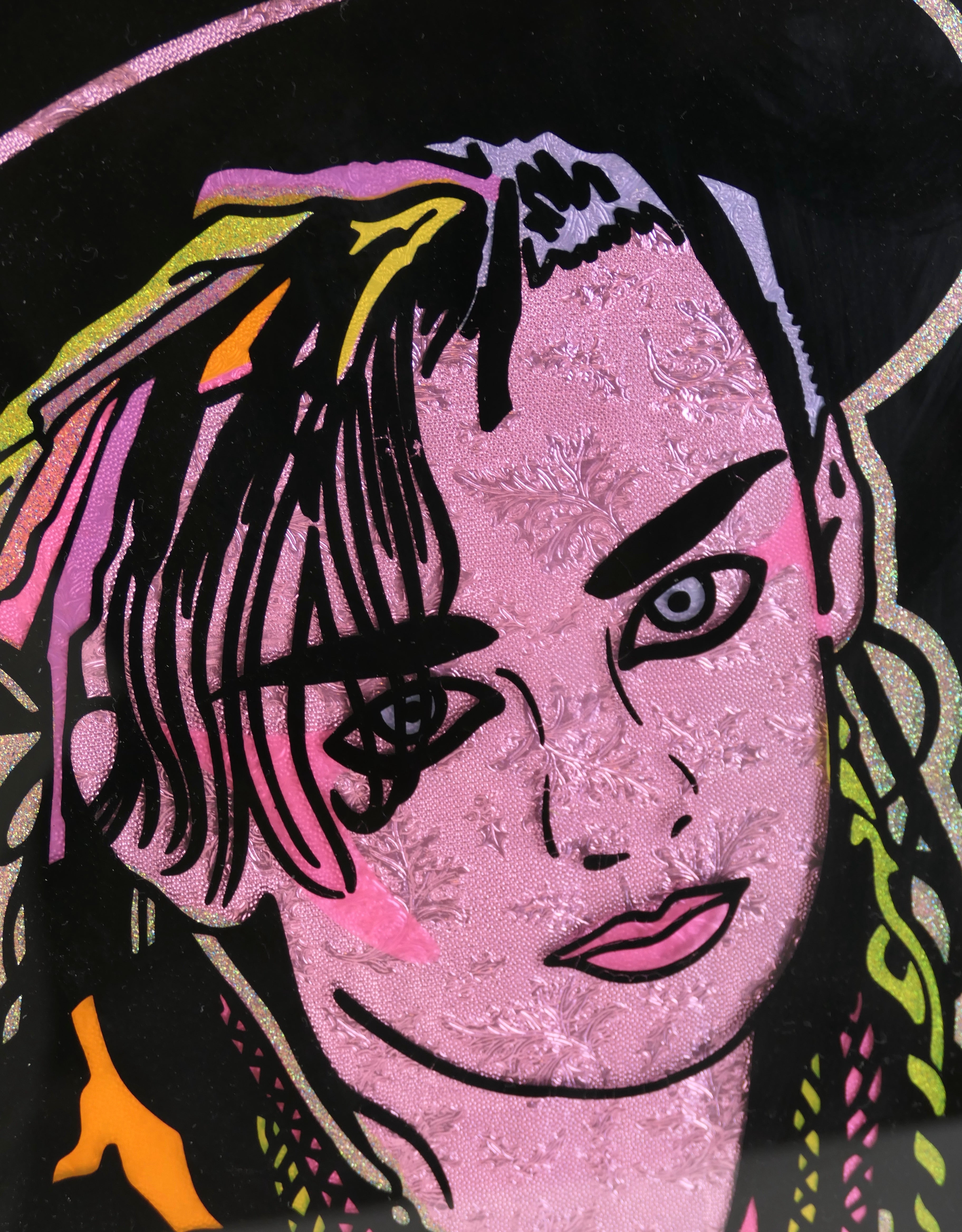 [Boy George] O'Dowd, George Alan. (b. 1961). Framed Art Glass Portrait, ca. 1980s.