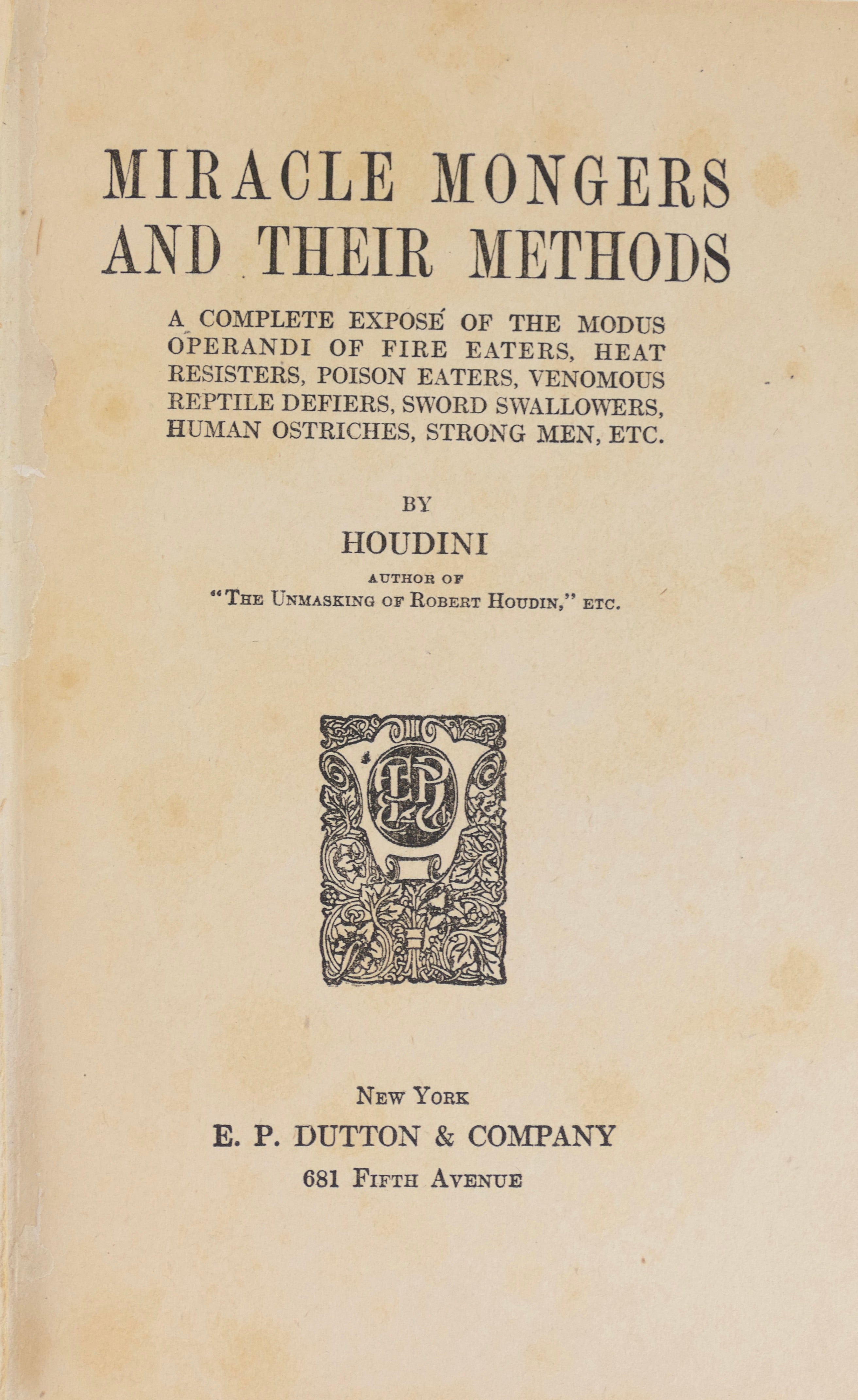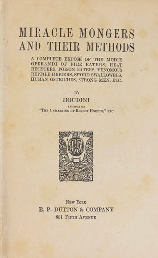 Houdini, Harry. (1874-1926) . Miracle Mongers and their Methods: A Complete Expose - SIGNED. New York: E.P. Dutton & Company. 1920. First.