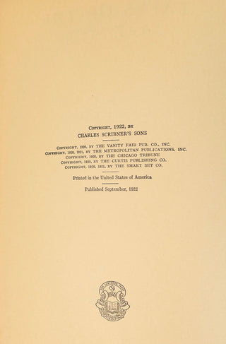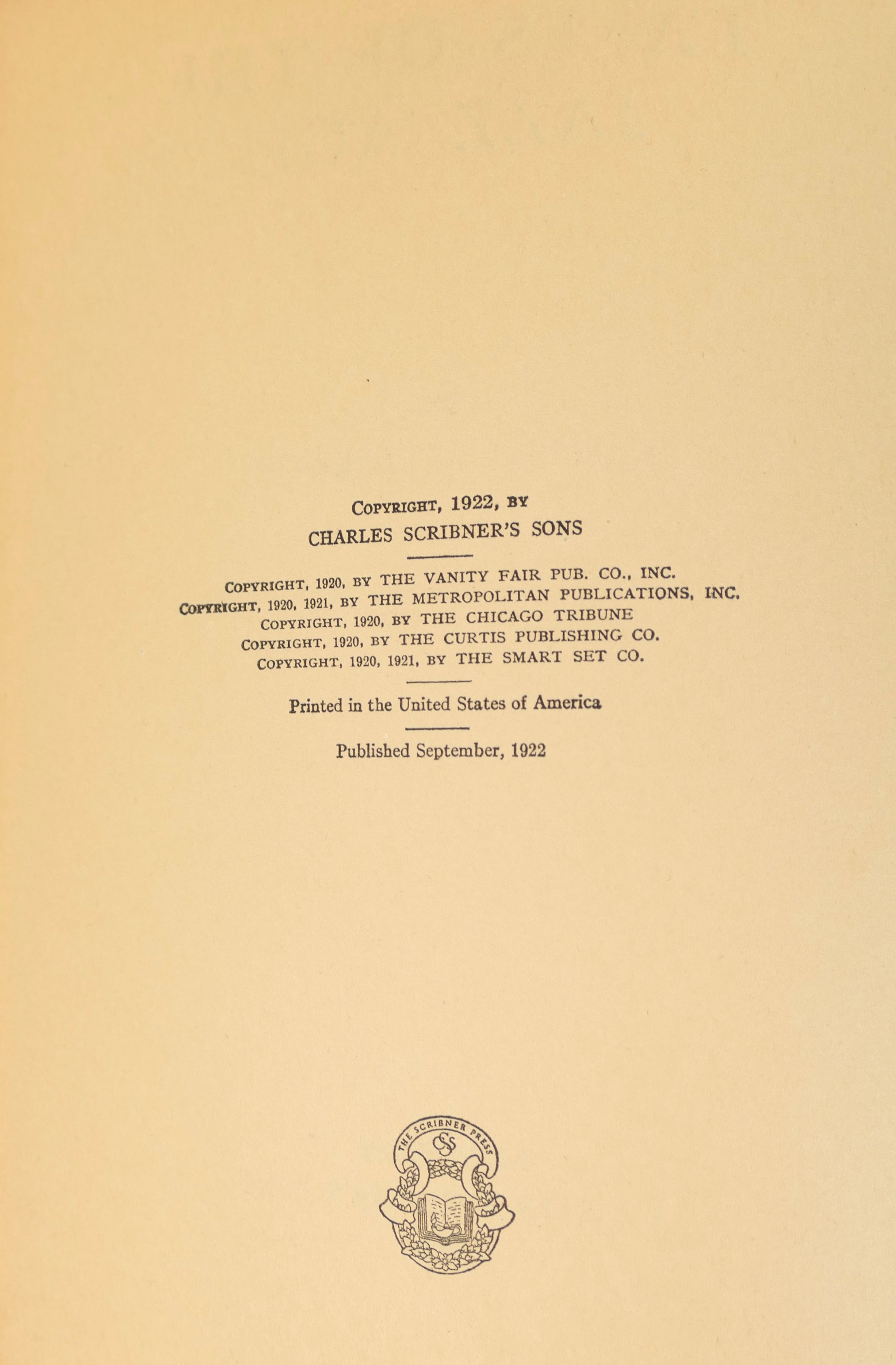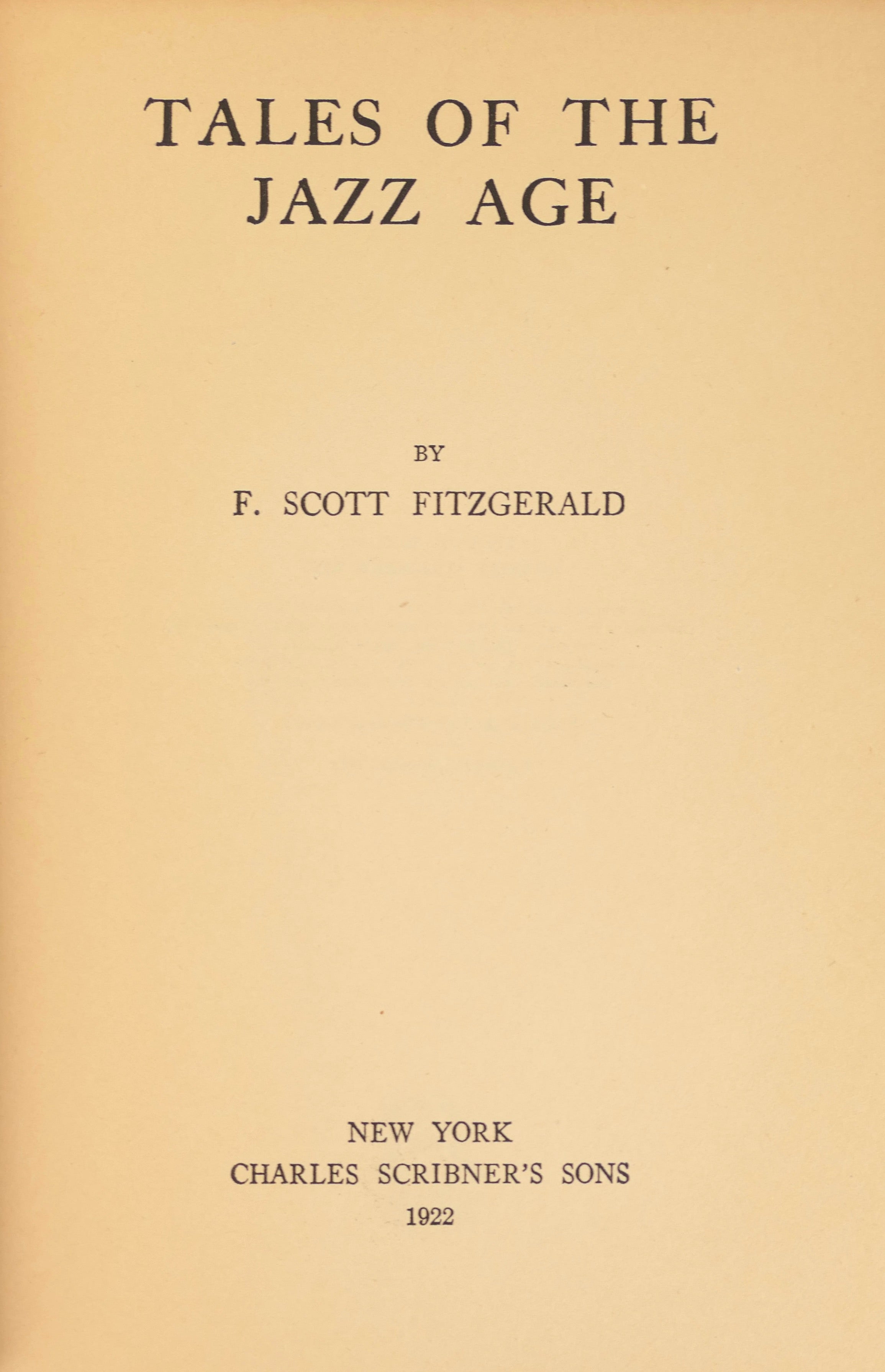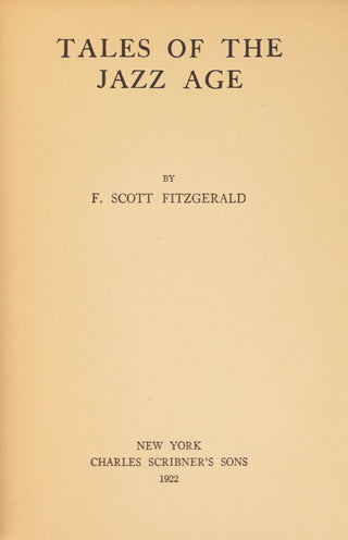 Fitzgerald, F. Scott. (1896–1940). "Tales of the Jazz Age" - FIRST EDITION. New York: Charles Scribner's Sons. 1922. First.