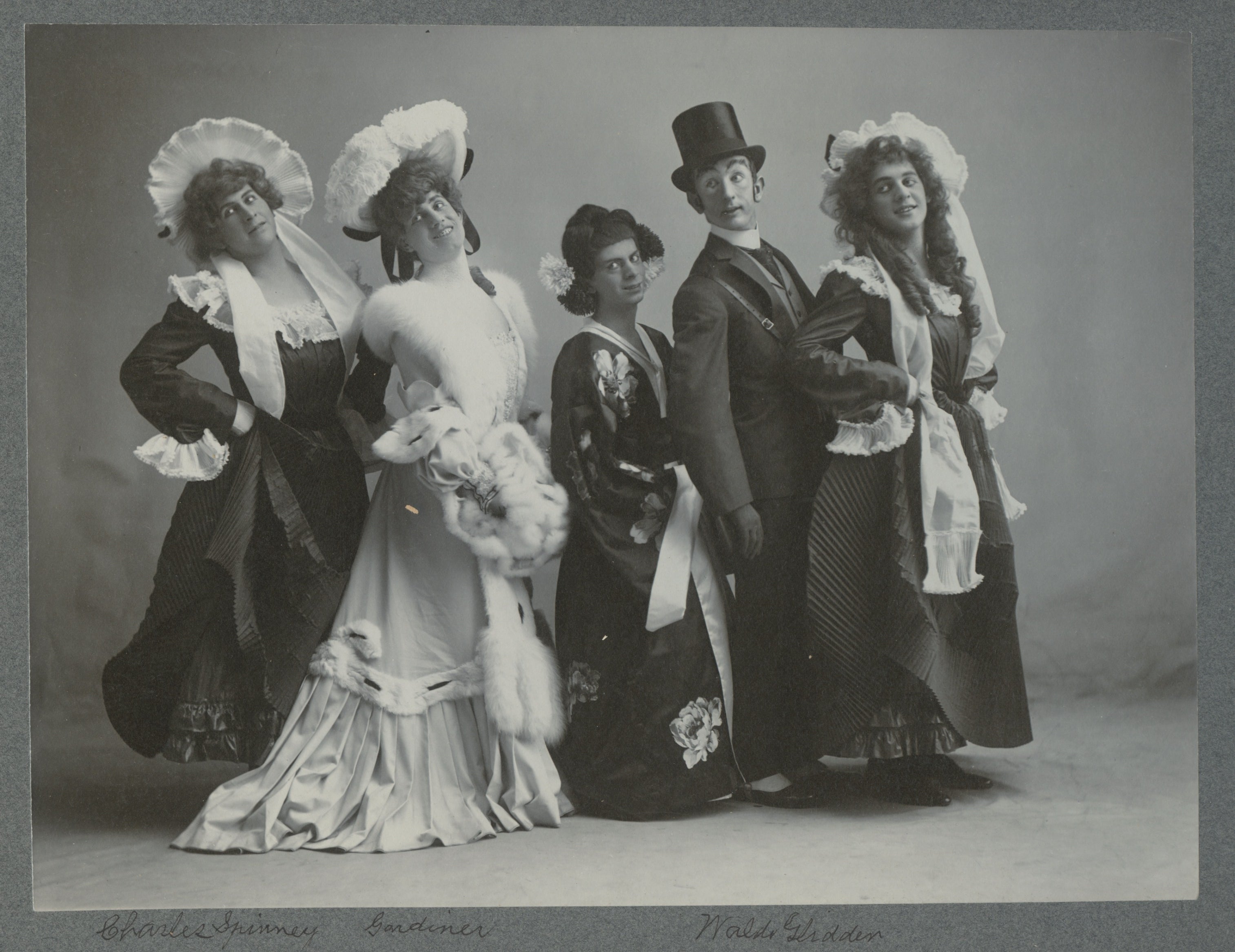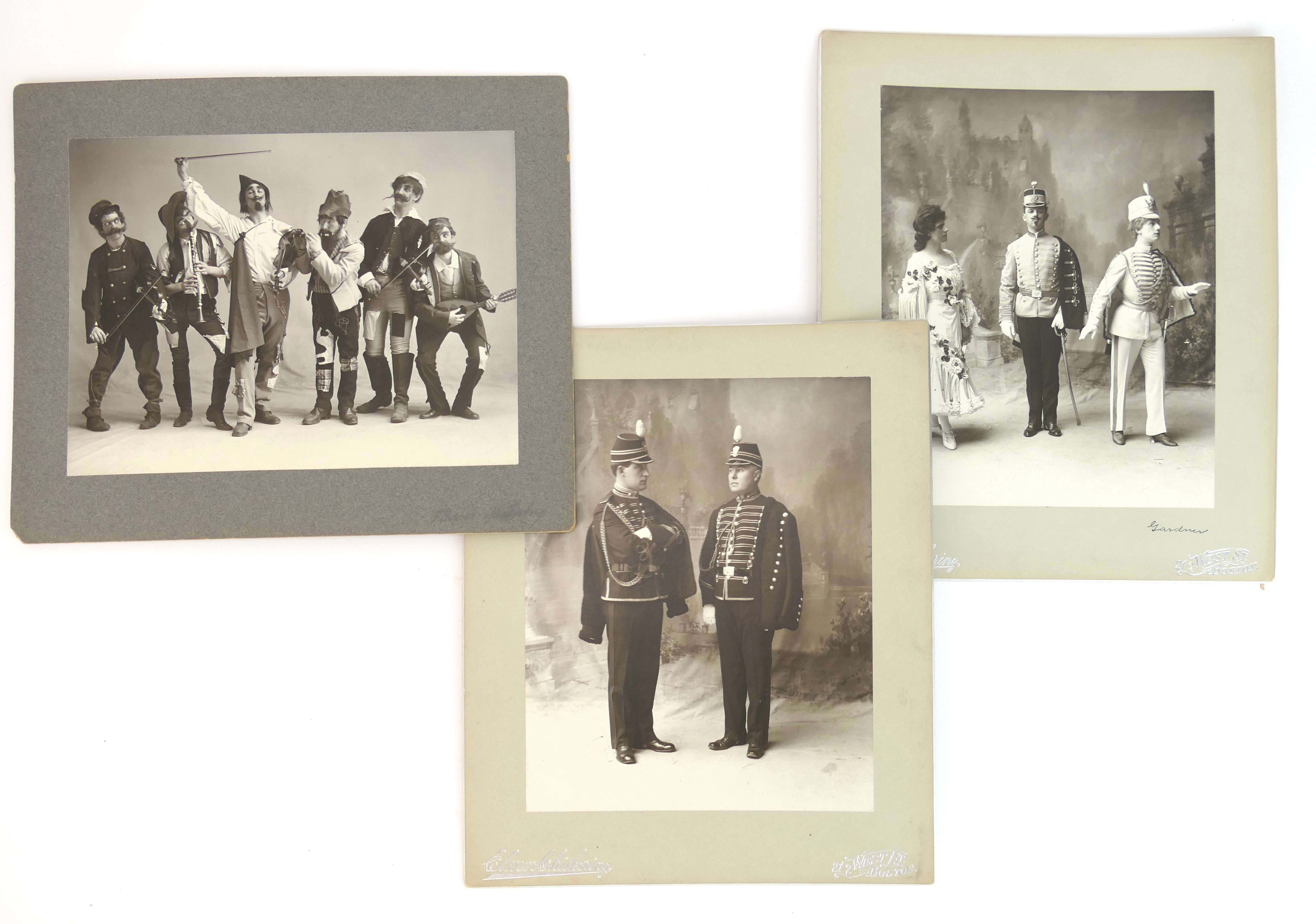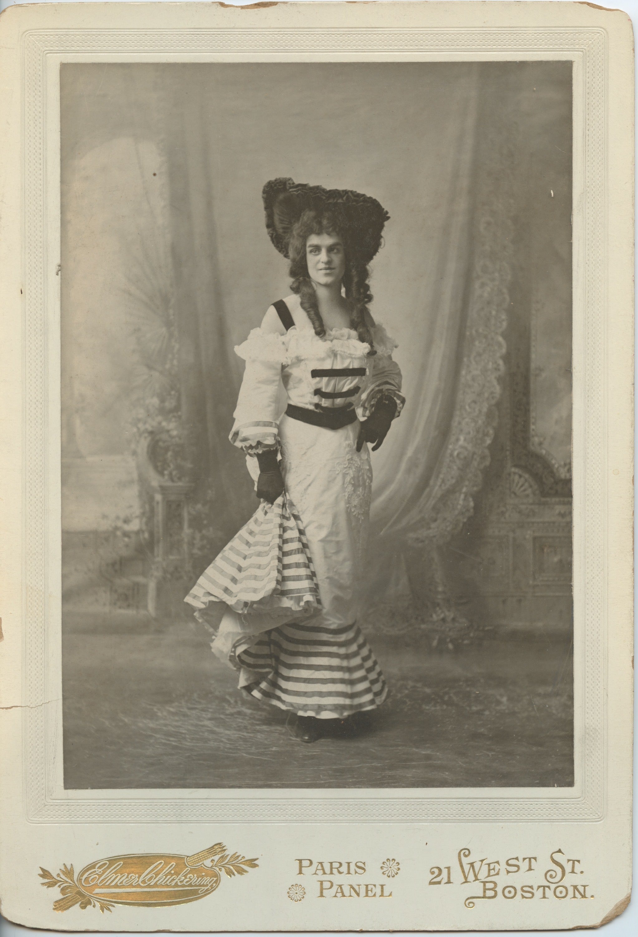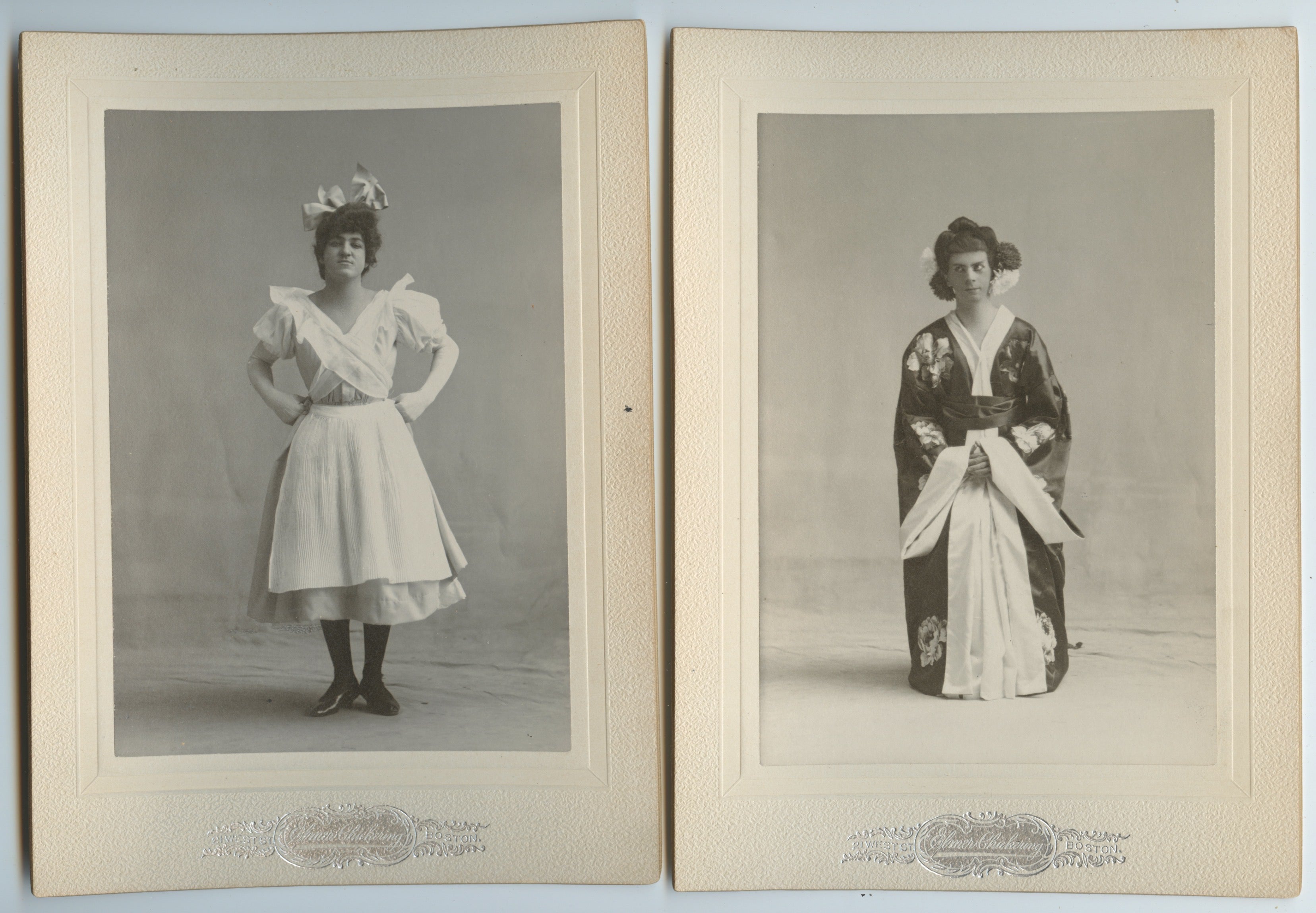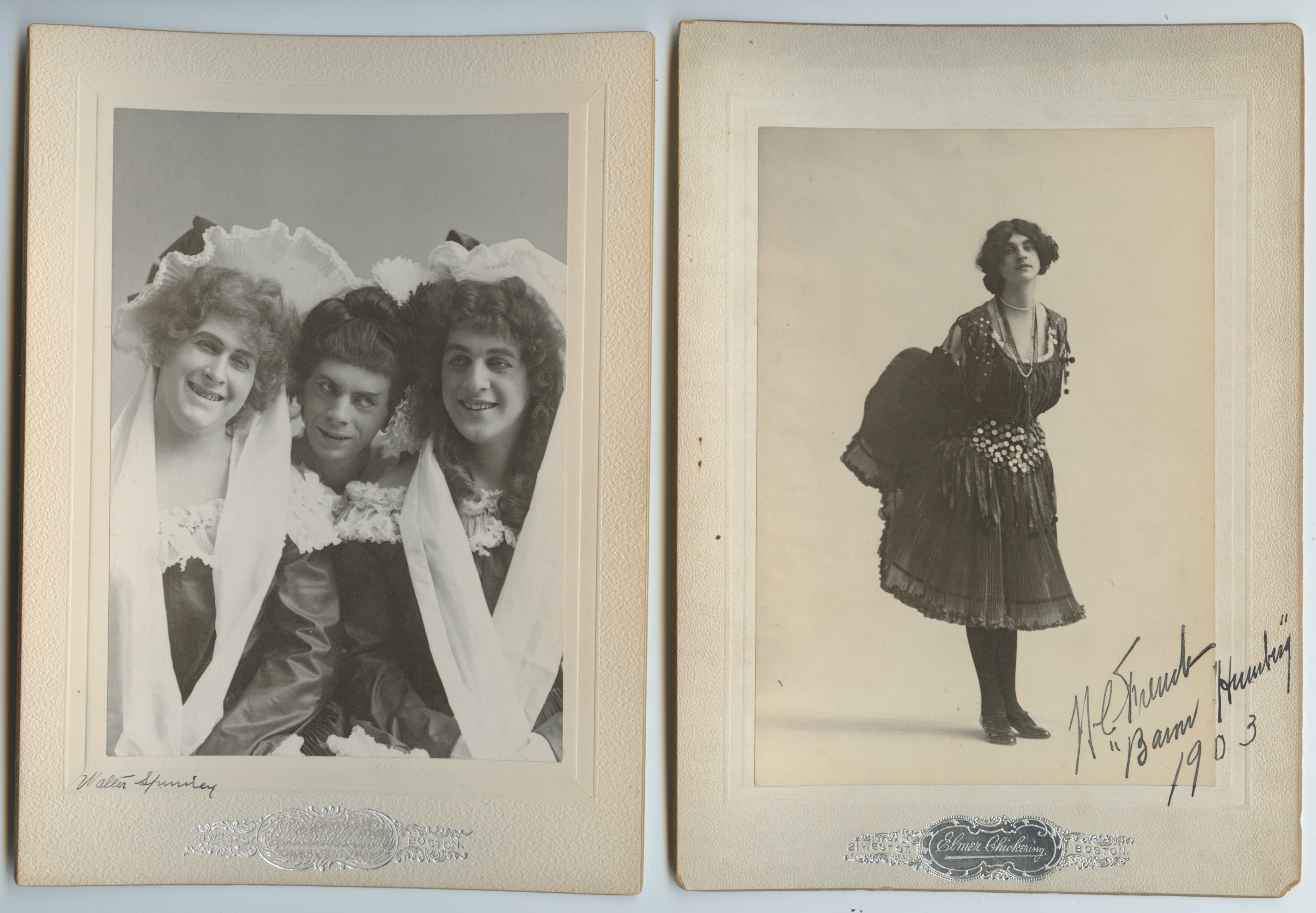 An important collection eight-eight original Elmer Chickering of Boston photographs documenting the performers in the Boston Bank Officers Association theatrical drag shows 1897 to 1908, most with men in drag, and including seven images of the young Julian Eltinge at the very start of his extraordinary career, and including characters from the productions 1897 "Pinafore on the Half Shell," 1900 "Miss Simplicity," 1900 "The Prince of Bohemia," 1903 "Baron Humbug," and 1908 "The Boy and the Girl." Including 22 Imperial cabinet cards (10 x 12 inches), 30 boudoir cabinet cards (6.75 x 20 inches), and 33 regular cabinet cards (7.5 x 5.25 inches). A number of the photographs signed by the performers and/or inscribed to the verso with production details or dates. Generally in very fine condition. A fabulous grouping that could support an entire exhibition alone.